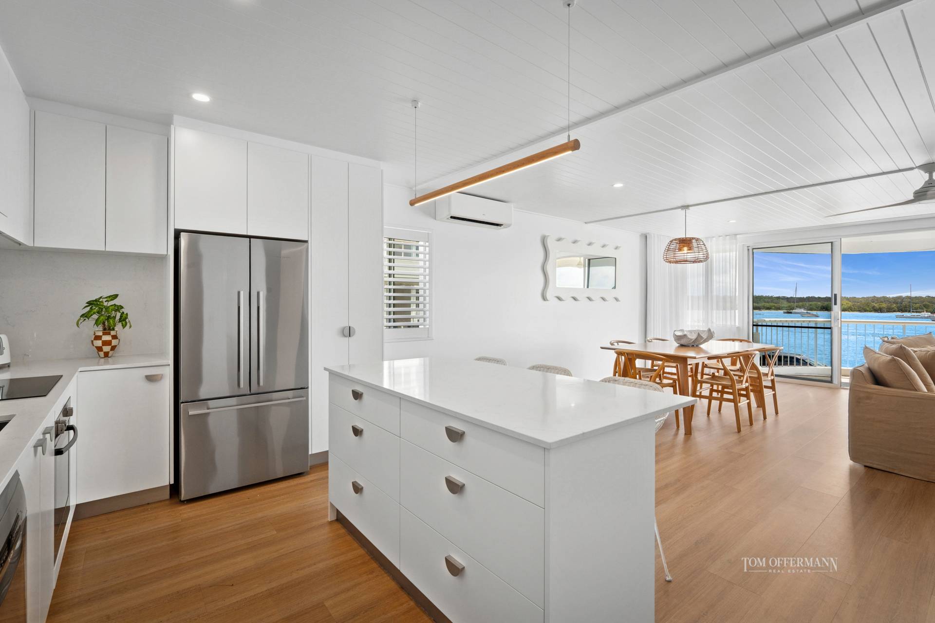 Every detail of this apartment has been thoughtfully designed to complement its idyllic setting. Soft coastal tones and an open-plan layout enhance the sense of space, light, and calm. The interiors blend contemporary style with laid-back beachside charm, creating a perfect retreat.