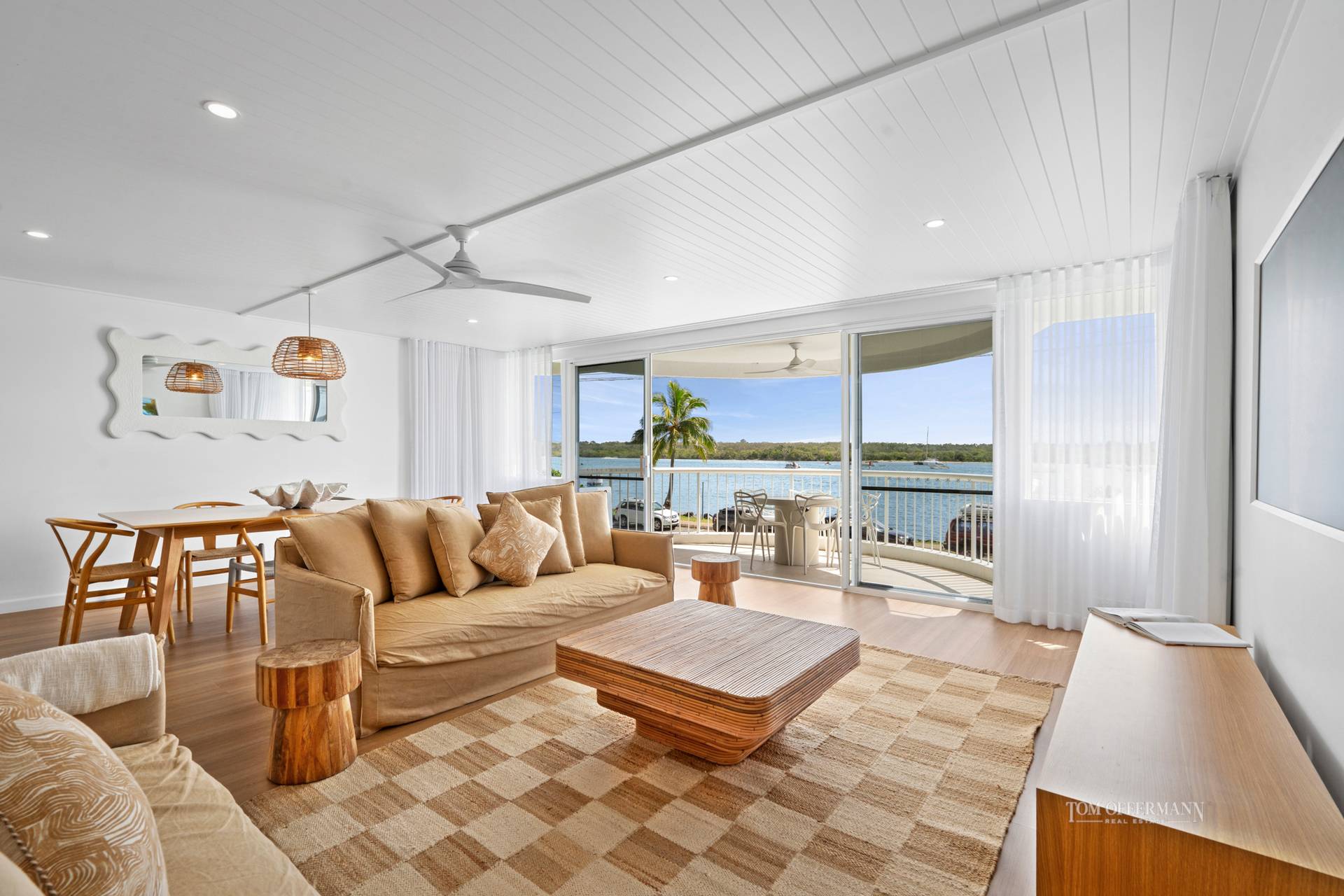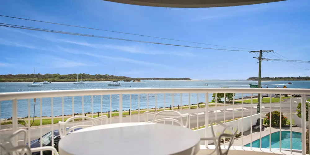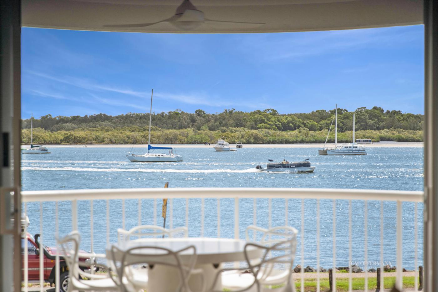Welcome to Apartment No. 5 at The Landings - a rare opportunity to secure a fully renovated, beautifully furnished residence in one of Noosaville's most prized riverfront locations. With uninterrupted, north-facing views stretching from Tewantin Harbour to the Noosa River Mouth, this first-floor apartment offers a front-row seat to the serene and ever-changing beauty of the Noosa River.