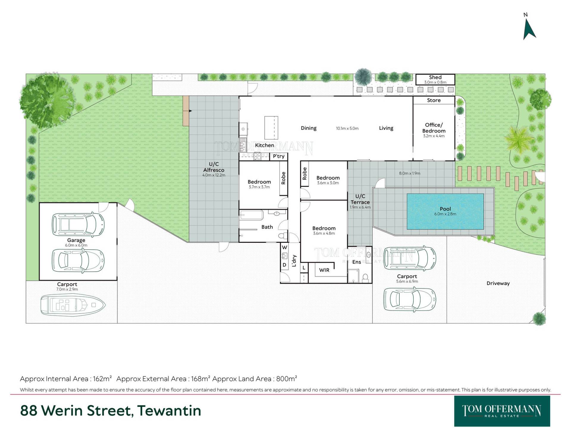 - Outdoor space: Two covered entertaining terraces; chemical-free "Naked" filtration pool; grassed backyard for the kids and pets; manicured gardens