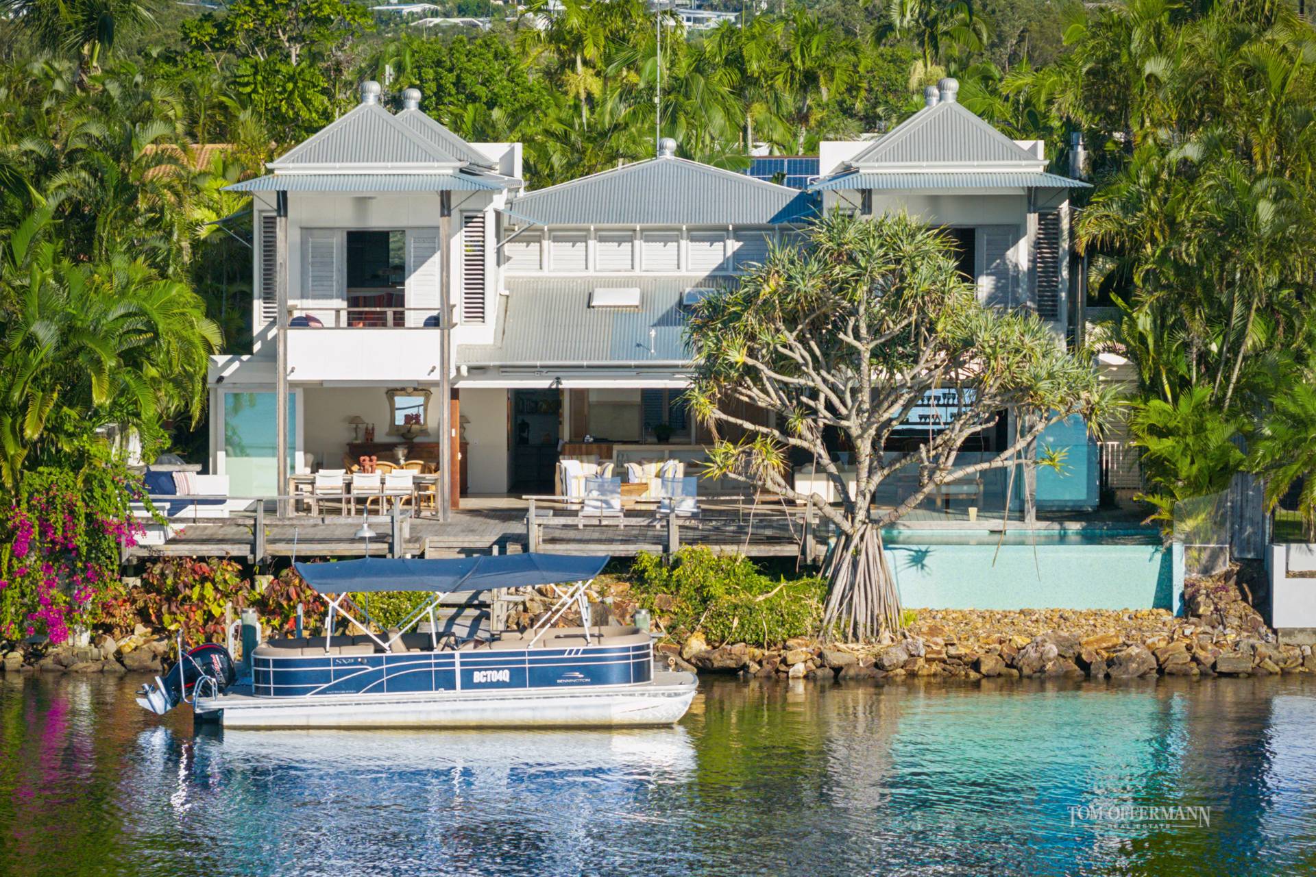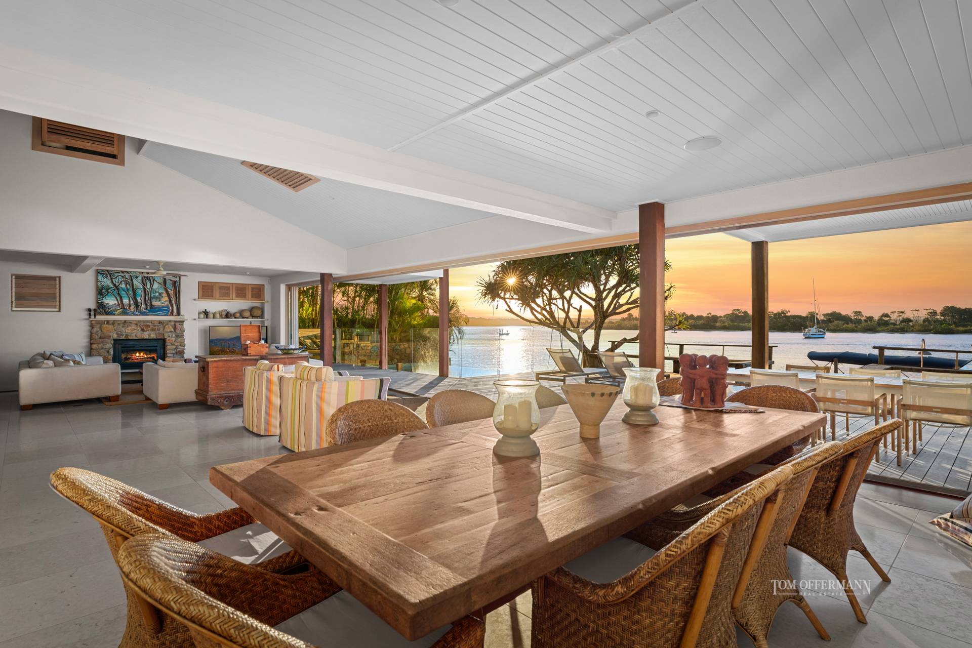 Boasting a deep-water mooring, incredible gun-barrel views which are never compromised, and enjoying a northerly aspect across a wide and tranquil reach of the Noosa River to a pristine stretch of bushland, is an incomparable luxury residence with whispers of classic brilliance.