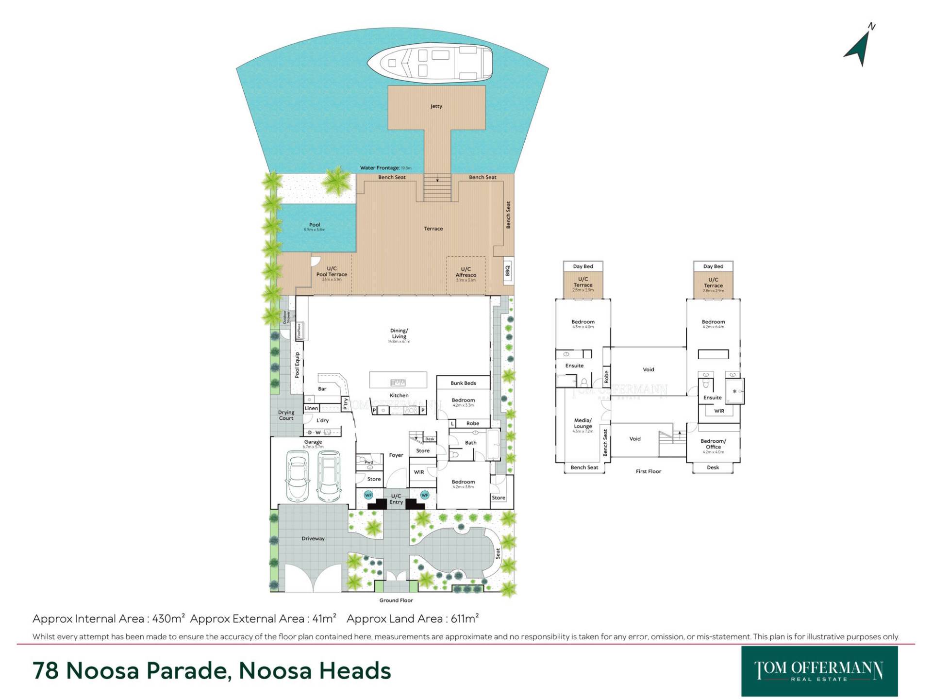 • Location: Noosa Parade only Noosa Sound street w deep water mooring, & no height restrictions for boats; 7-min walk to Hastings St & Noosa Main Beach, few mins more along boardwalk to Noosa National Park & world recognised Surfing Reserve; short walk to Ricky's Restaurant & Riverbar; long water views; to east is Hastings Street, west along Noosa River & beyond is Cooroy Mountain