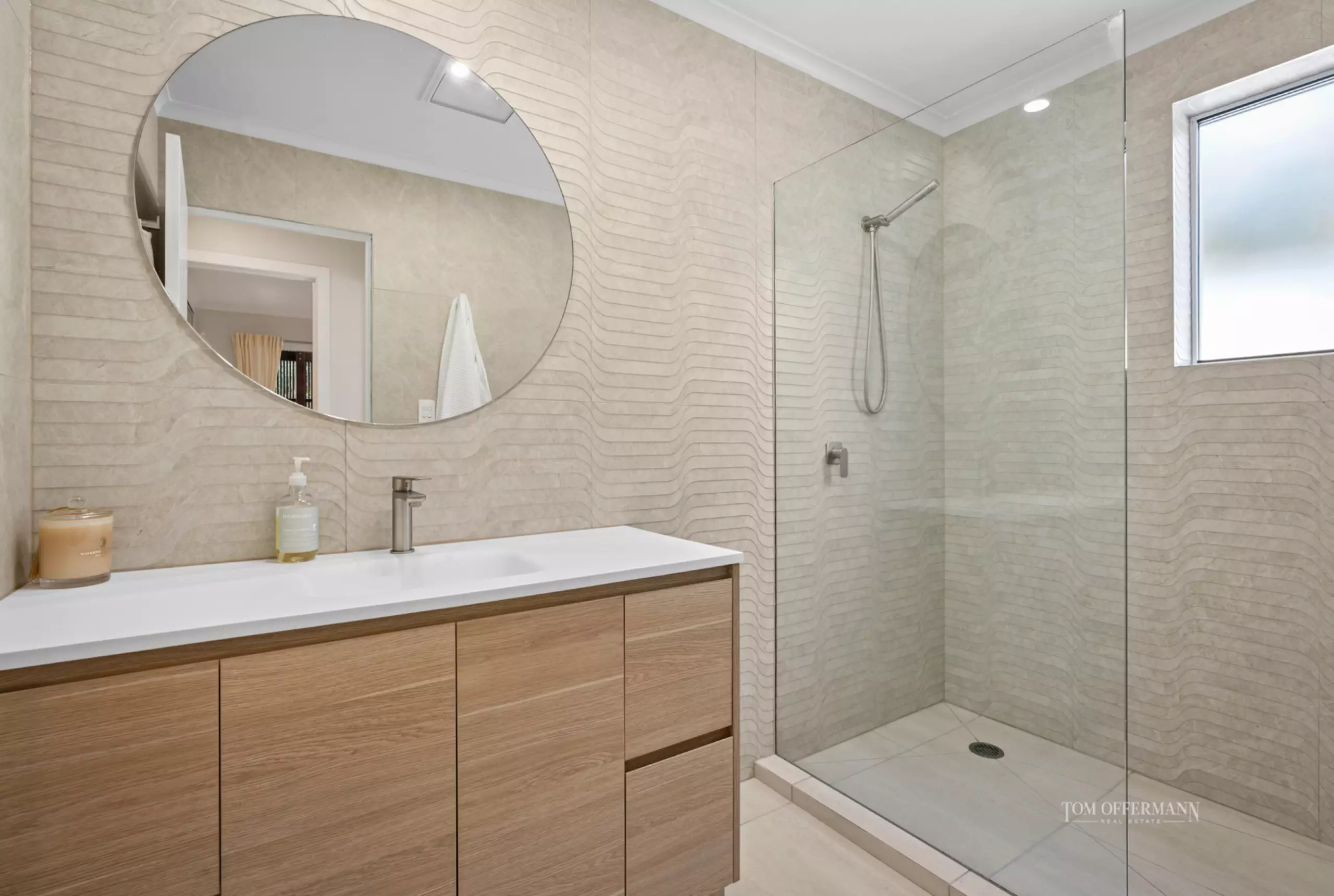 Every finish, fixture and design element from the gentle sage tones of the tiling to the grounding texture of the coastal blackbutt flooring has been carefully selected with quality, style and functionality in mind. Thumbprint keyless entry, automated locking system and remote-access security means that peace of mind is more like a state of being. With 6.64kw of solar over head for heating and power, energy efficiency is effortless while the smart system ducted air-conditioning ensures each room matches the individual comfort of its occupant.