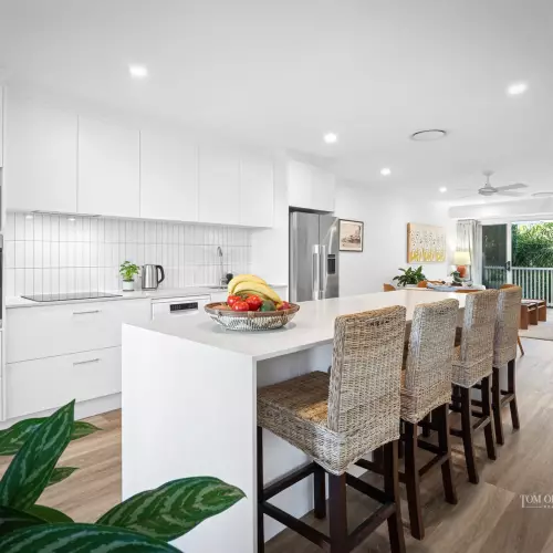 Designed for year-round enjoyment, multiple outdoor living spaces invite you to relax and unwind – from the lush courtyard to the elevated covered deck with panoramic views over the Noosa Hinterland and Emu Mountain. Whether it's morning coffee or sunset drinks, there's a perfect spot for every moment.