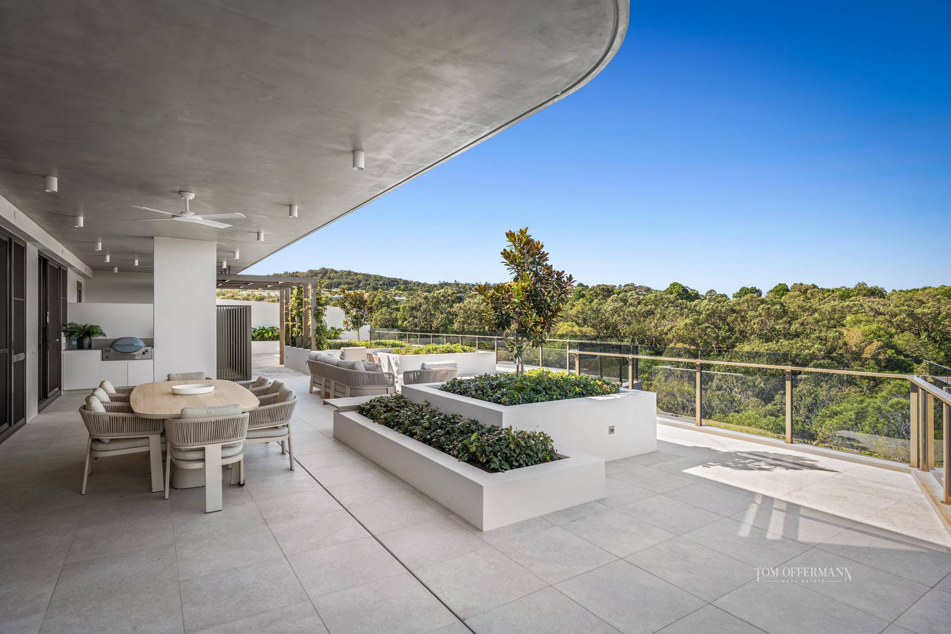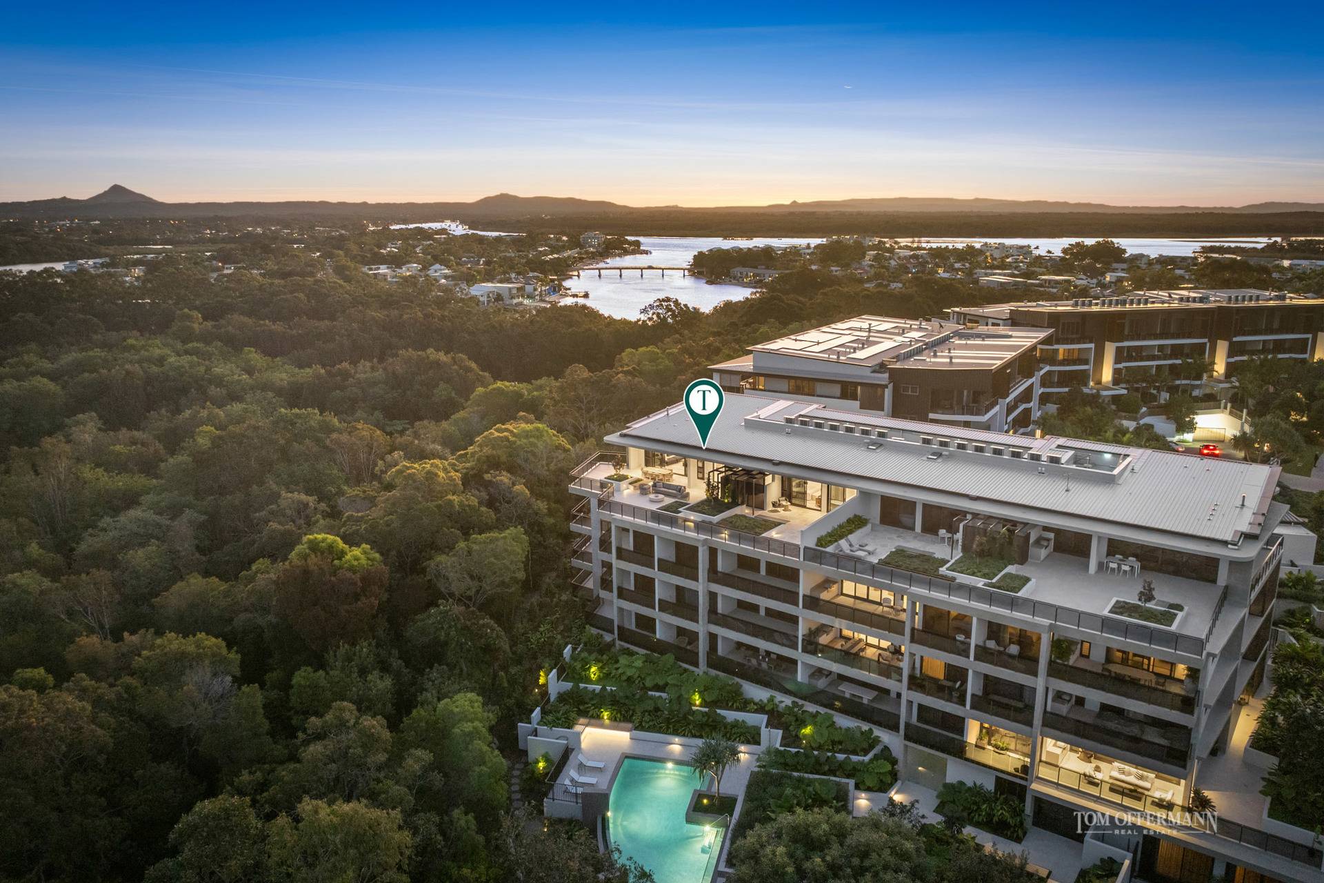 Gracing the pinnacle of luxury's new address in an exceptional enclave, sweeping terraces offering dress circle 270° views, from verdant sub-tropical gardens, nature reserves, Noosa River, blue-hued ranges and Hinterland, walking distance to Hastings Street and the cosmopolitan heart of Noosa Heads, is a sparkling new 536m2 skyhome.