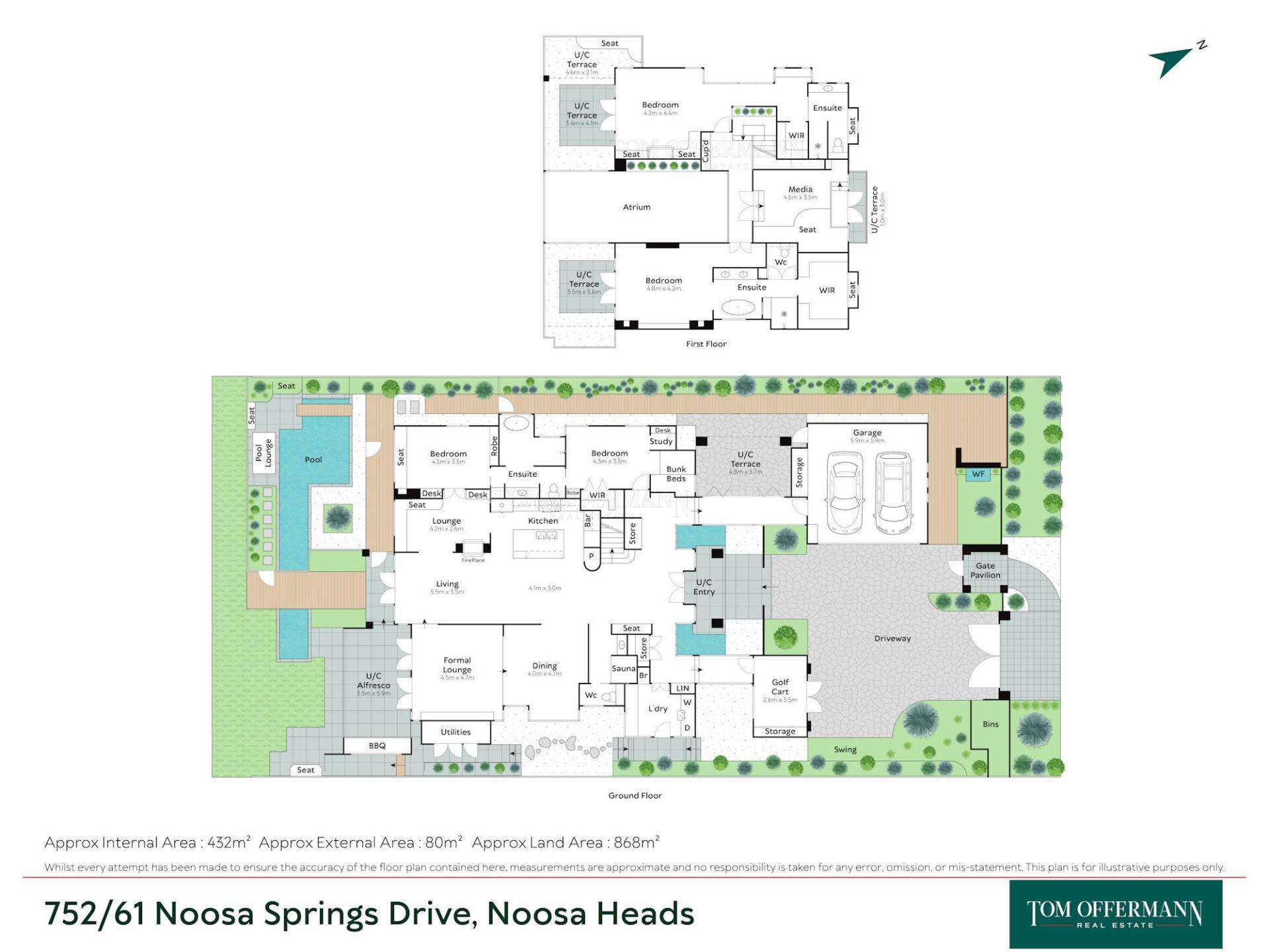 "Indulge in the epitome of a truly breathtaking residence, on par with excellence, boldly staking its claim on an unparalleled 868m2 site," comments Tom Offermann Real Estate marketing agent Erica Newton. "It is surrounded by tranquility and located a mere 60 seconds to the 2nd fairway of world class Noosa Springs Golf and Spa Resort. Sounds like a double eagle.