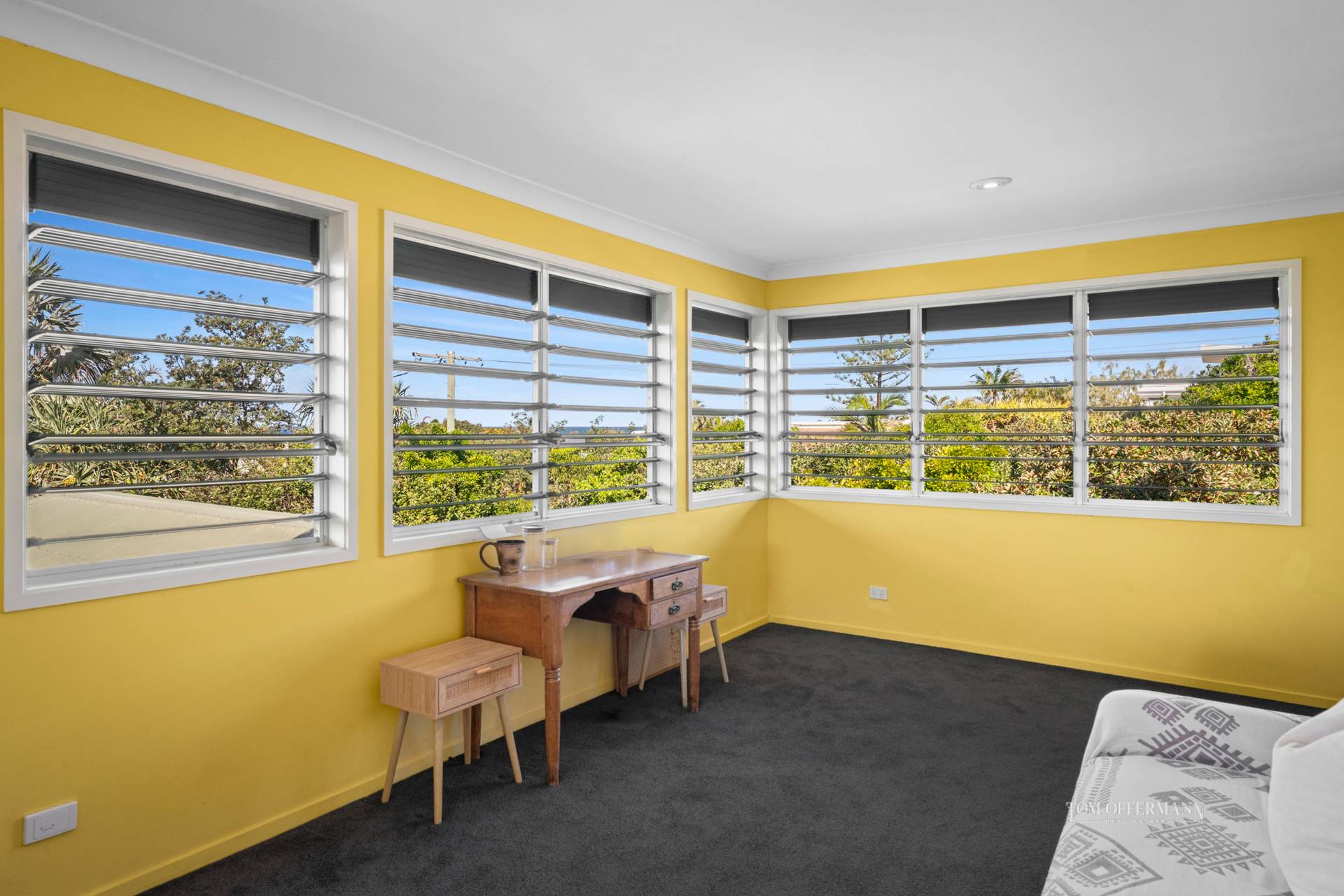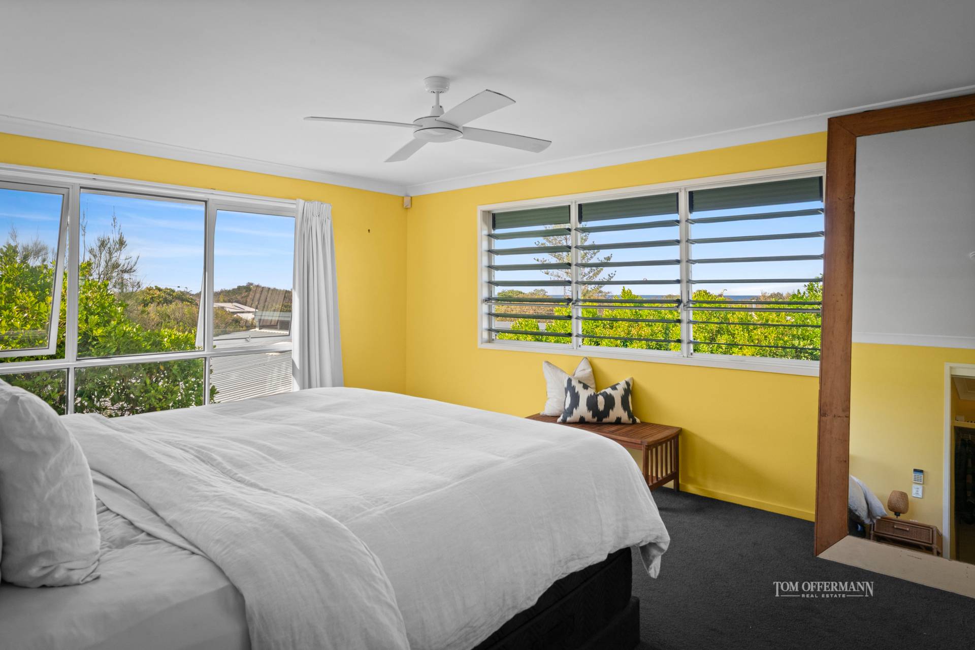 Designed for comfort and flexibility, the ground floor offers three bedrooms, a bathroom, and a large multi-purpose room that could function as a home office or additional storage. Upstairs, the spacious main suite is your private retreat, featuring a large sitting area, walk-in robe, private ensuite, and elevated ocean views to the east.