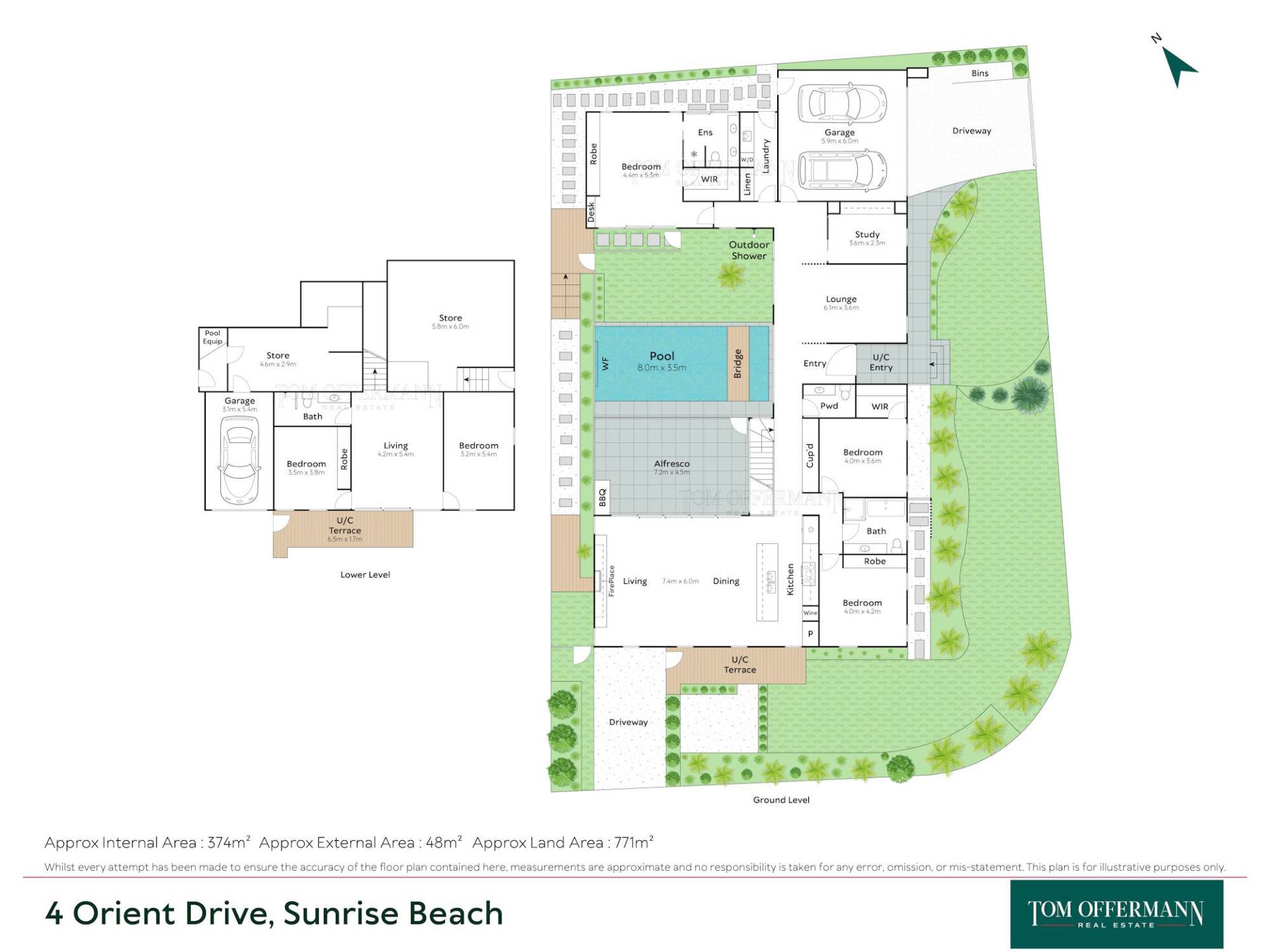 • Interior/Exterior Areas: 374m2/48m2