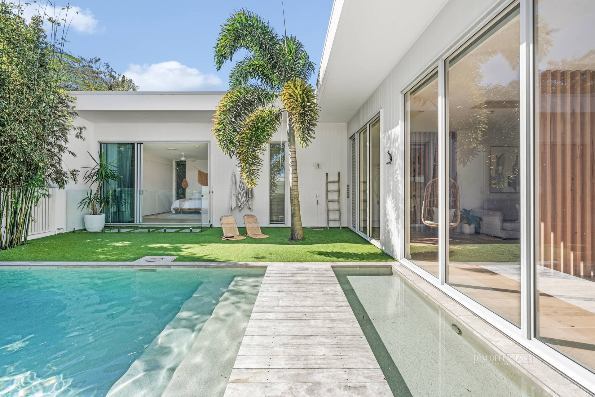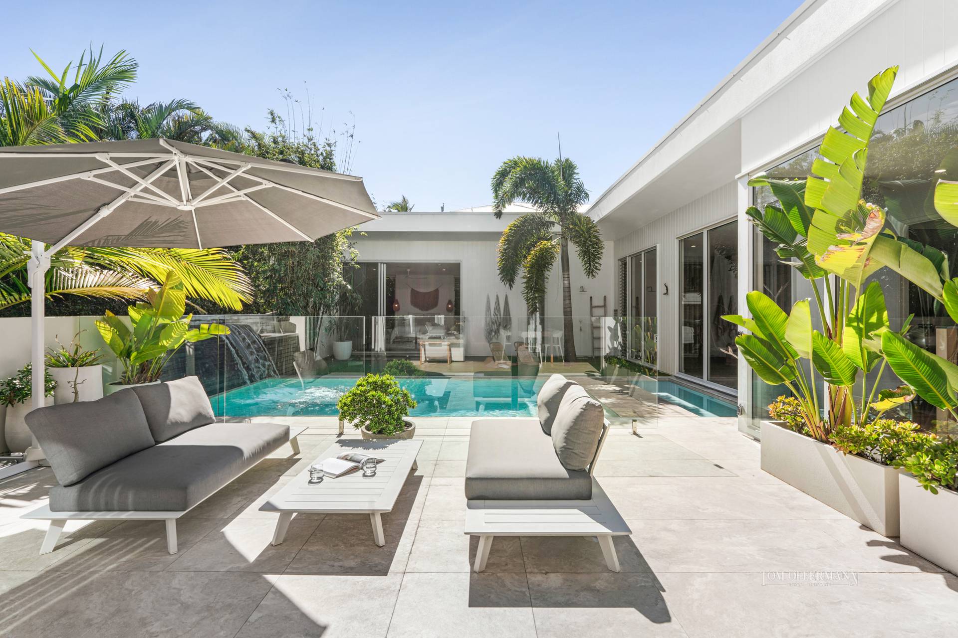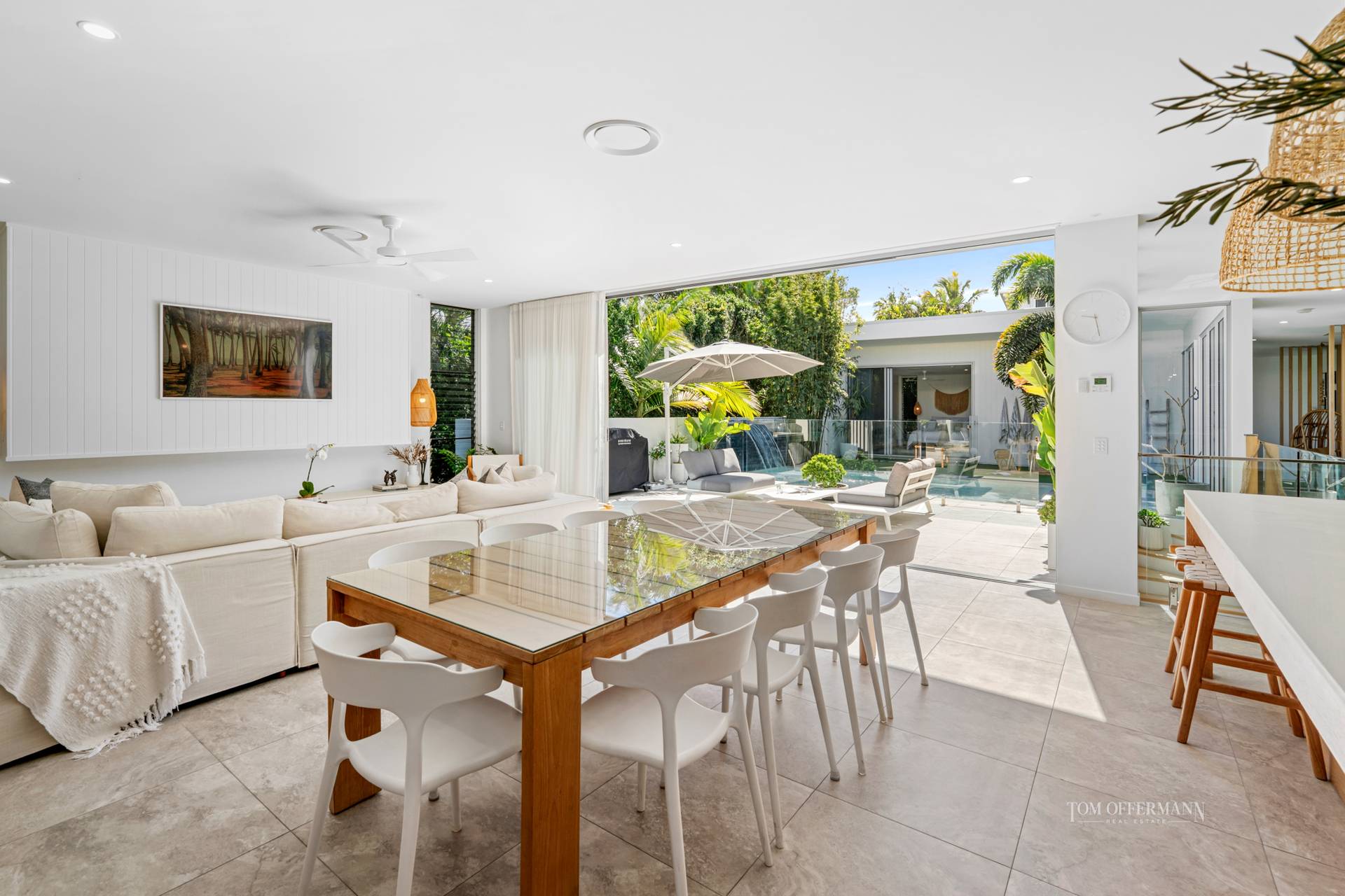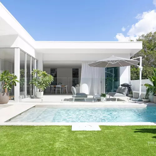 When audacious splendour and chichi style supersede all, it is one indescribable joy! Serenely positioned on a prized corner in a cracking location mere minutes to squeaky white sand, and cutting a sleek silhouette, is an exciting near-new, modernist-style masterpiece. It is a true haven of tranquillity, airiness and unwavering privacy, that from wherever you look blurs the lines between indoors and out. It is also the epitome of entertaining prowess, whatever the season and, absolutely every reason.