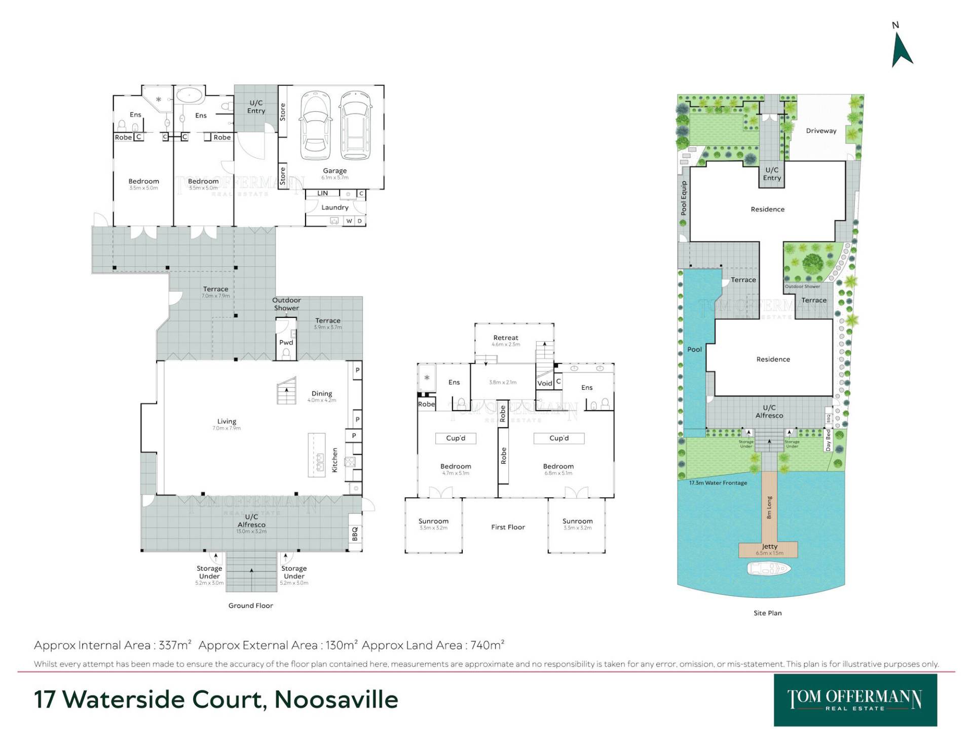 - Waterfrontage & Jetty: 17.3m w 8m jetty + 6.5mx1.5 T-end & pontoon