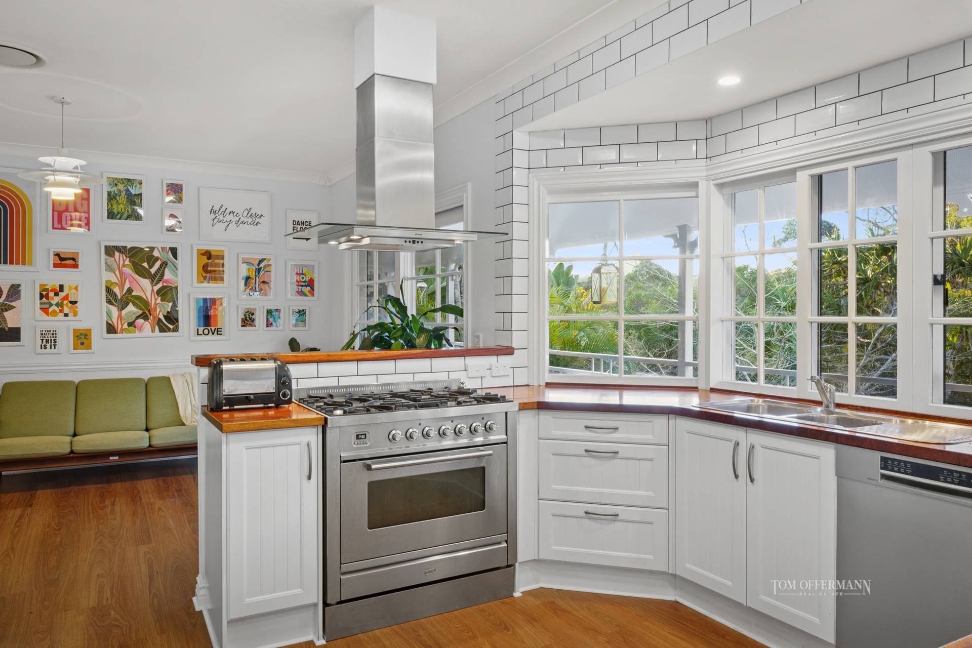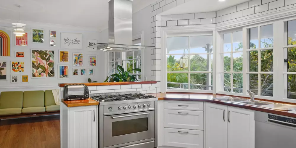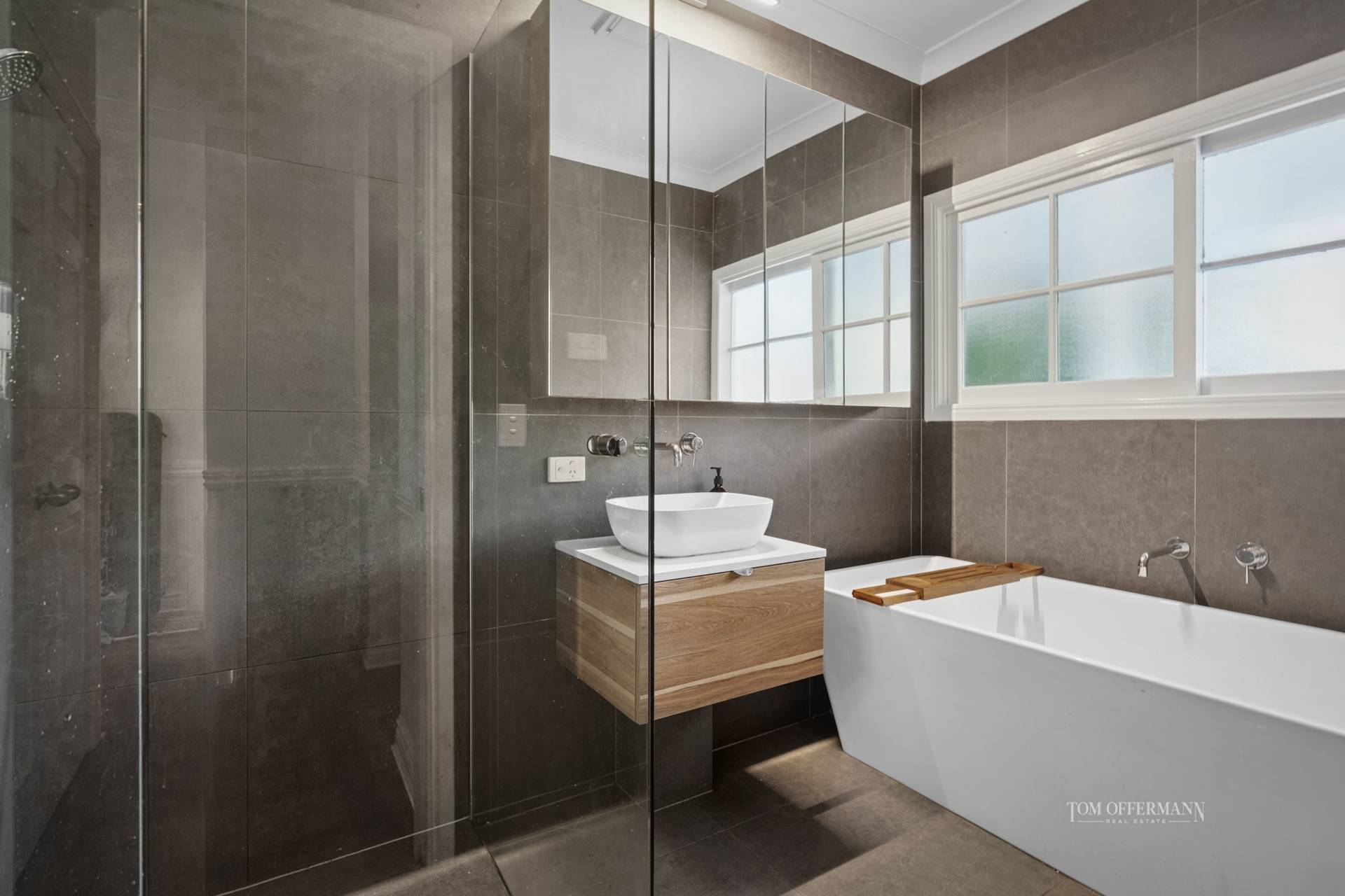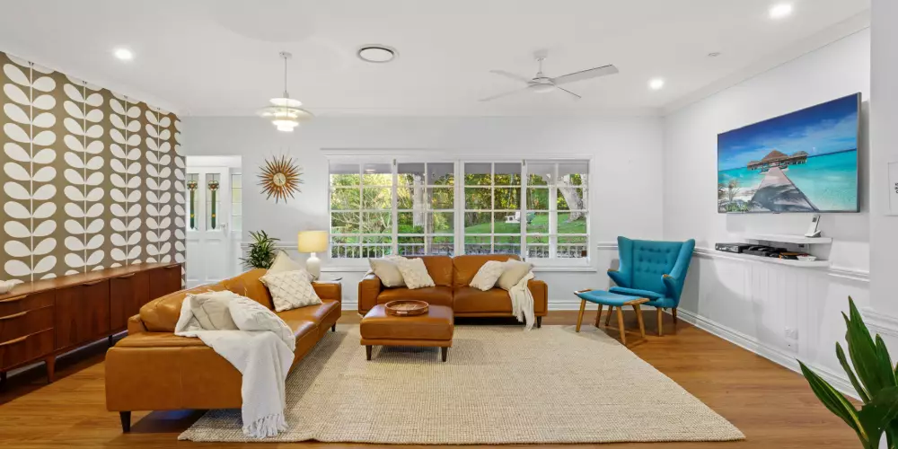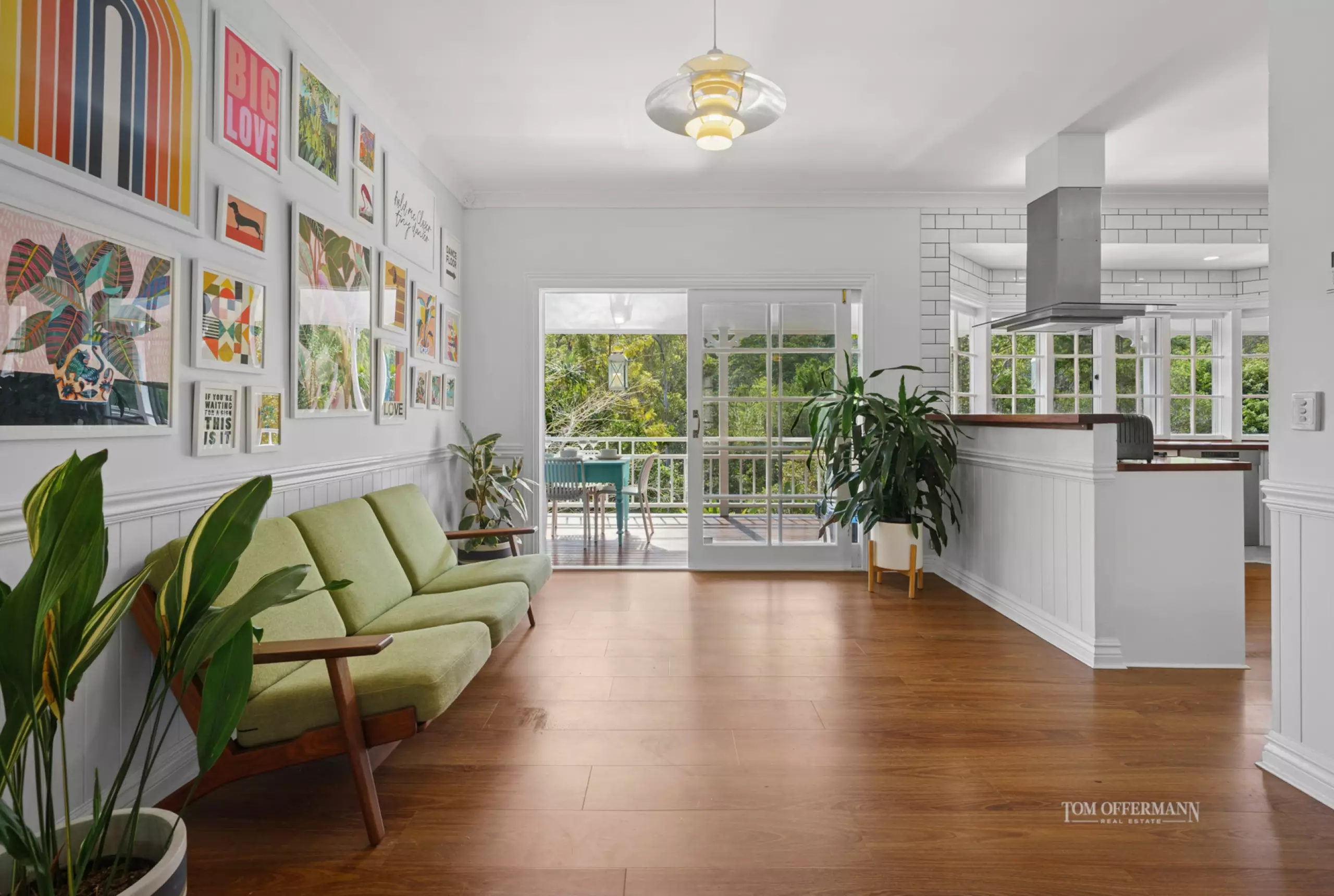 Once inside, the interiors balance timeless character and modern comfort with expert precision. Timber tones and VJ wainscotting establish warmth and rhythm, the pressed metal feature wall and art deco lighting nod to craftsmanship of years gone by, while playful tropicana décor brings colour and vibrancy. Modern amenities include the rejuvenated bathrooms, ducted air conditioning, 13.26 kW of solar and even an EV charger ensuring every convenience of contemporary living is met without compromising on vintage charm.