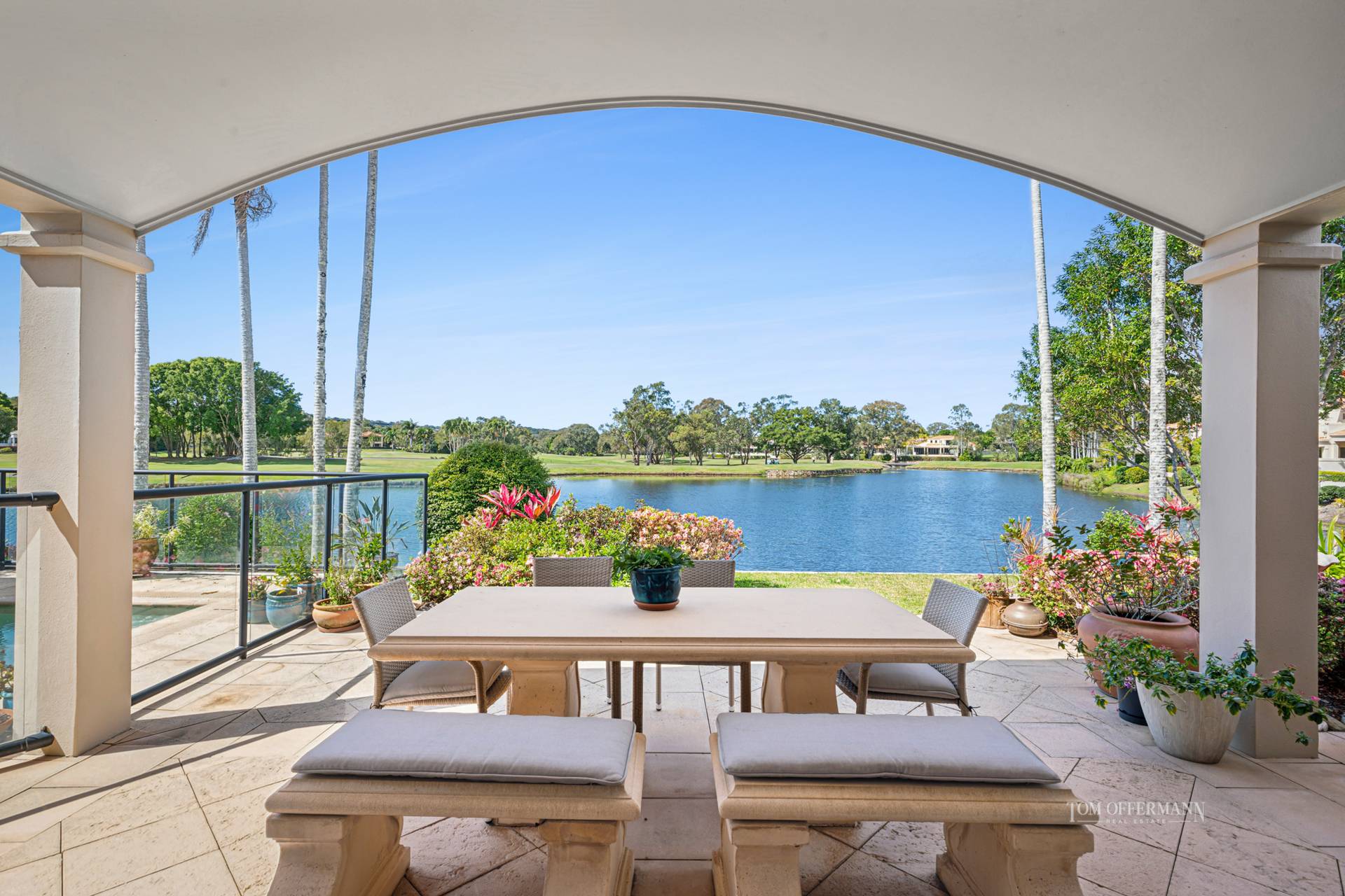 From the very first glance, this residence reads like a love letter to Mediterranean design but softened by the subtropical air of Noosa. Terracotta tones meet crisp plastered walls, arches open onto breezeways, courtyards blur the line between indoors and outdoors. It is a home that seems to belong both to Europe and to Queensland, to a culture of long lunches, late evenings, laughter echoing around a pool, and the kind of time that slows down enough for you to savour it. Here, you don't live by the clock; you live by the light, by the warmth, by the rhythm of golf carts gliding past and water gently lapping at the edge of the lawn.