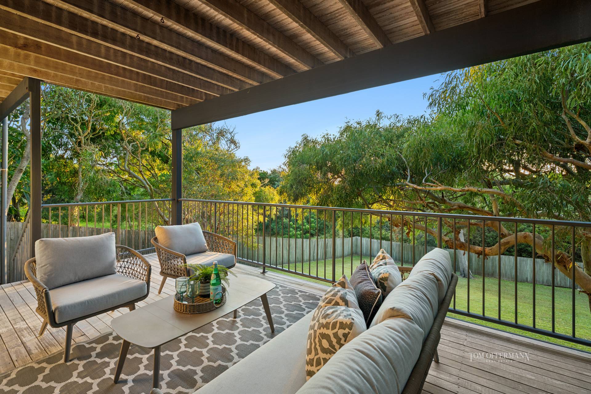 The level lawn is low-maintenance and ideal for backyard games, with plenty of space for a pool or future landscaping if desired. A timber gate at the rear of the garden leads through the reserve directly to the beach – a sandy path just waiting for barefoot adventures.