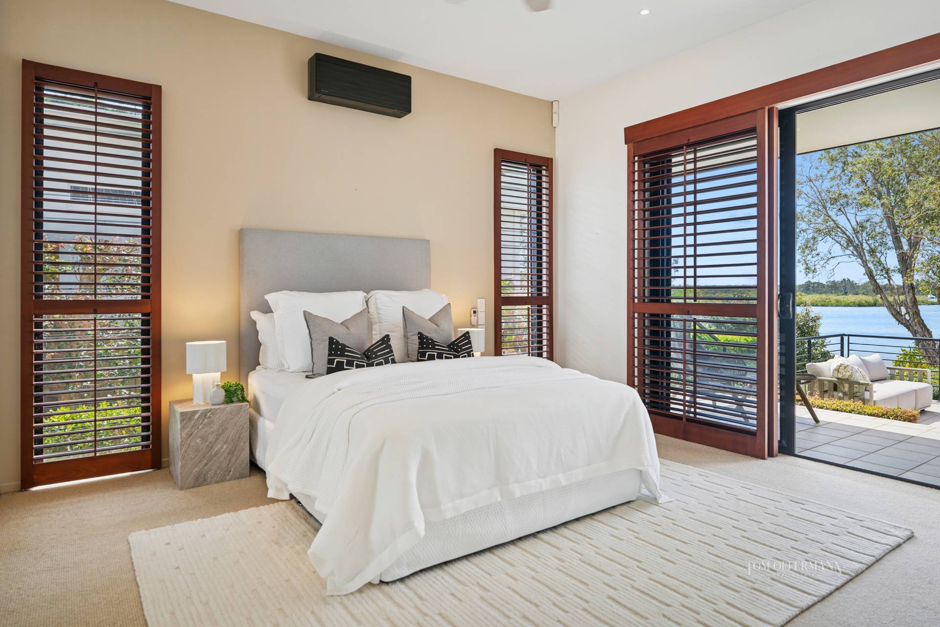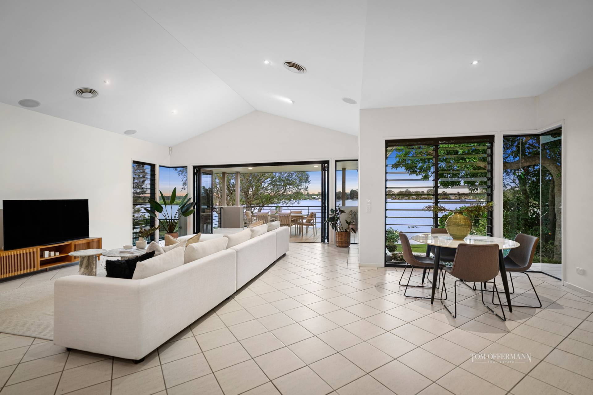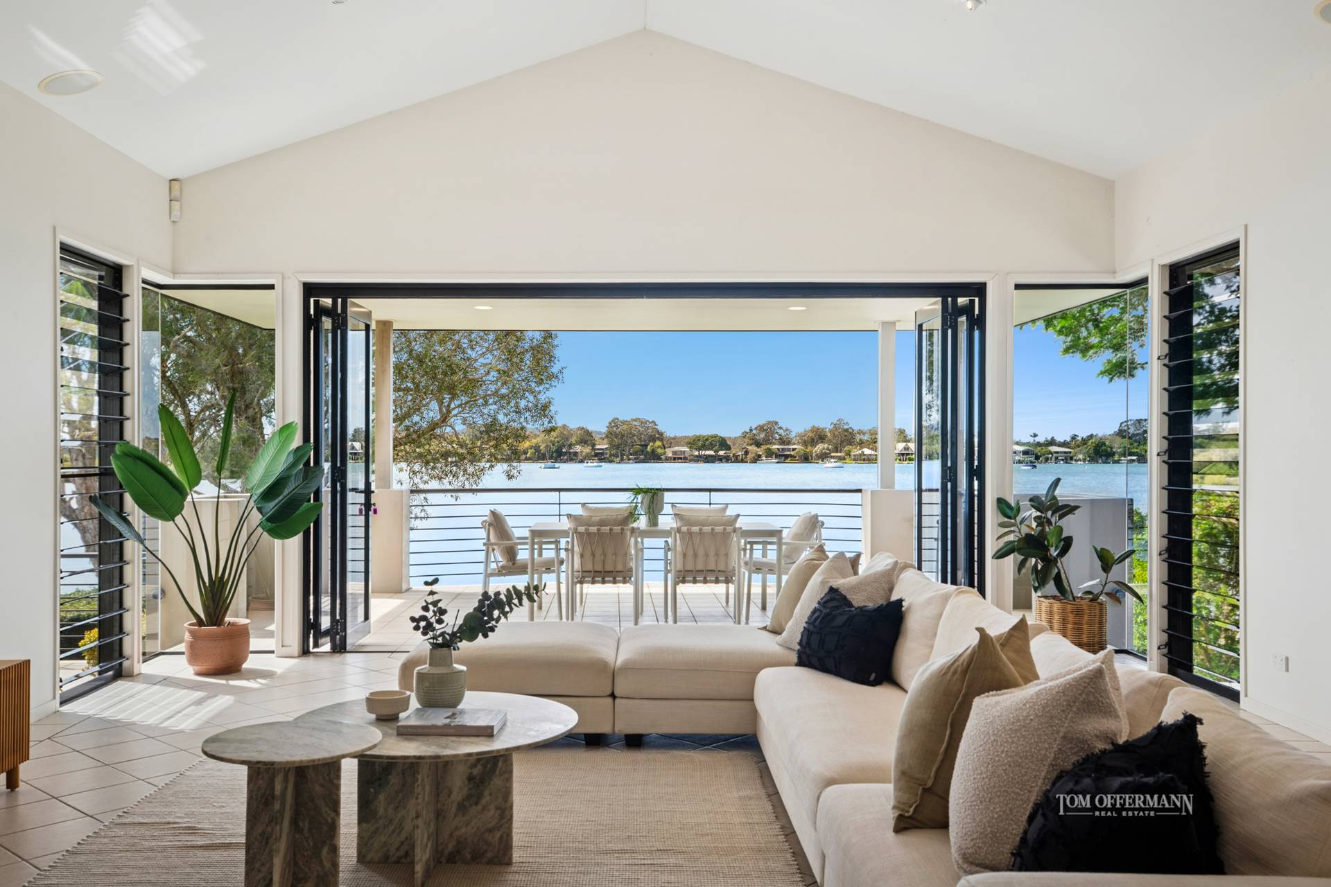 Commanding the most spectacular presence in a private cove, leeside of Sheep Island nature reserve and Richard Branson's world-famous Makepeace Island, is a highly desirable Noosa River hideaway with extensive lush lawn area connecting to the water's edge, and aptly called Riversong.