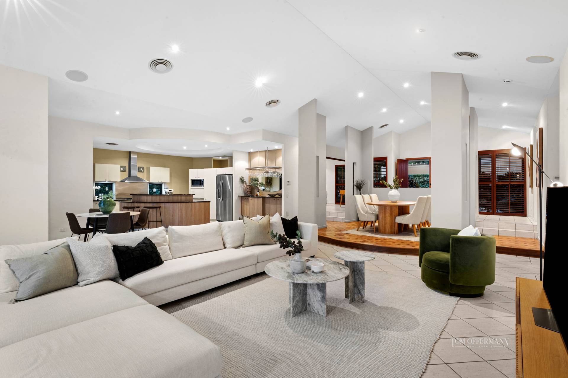 Push aside the double timber doors into the foyer, look beyond to the sizeable living spaces, with ever-so-high 4m vaulted ceilings cultivating a sunny state of mind whilst blending a casual breezy overlay with modern sensibility.