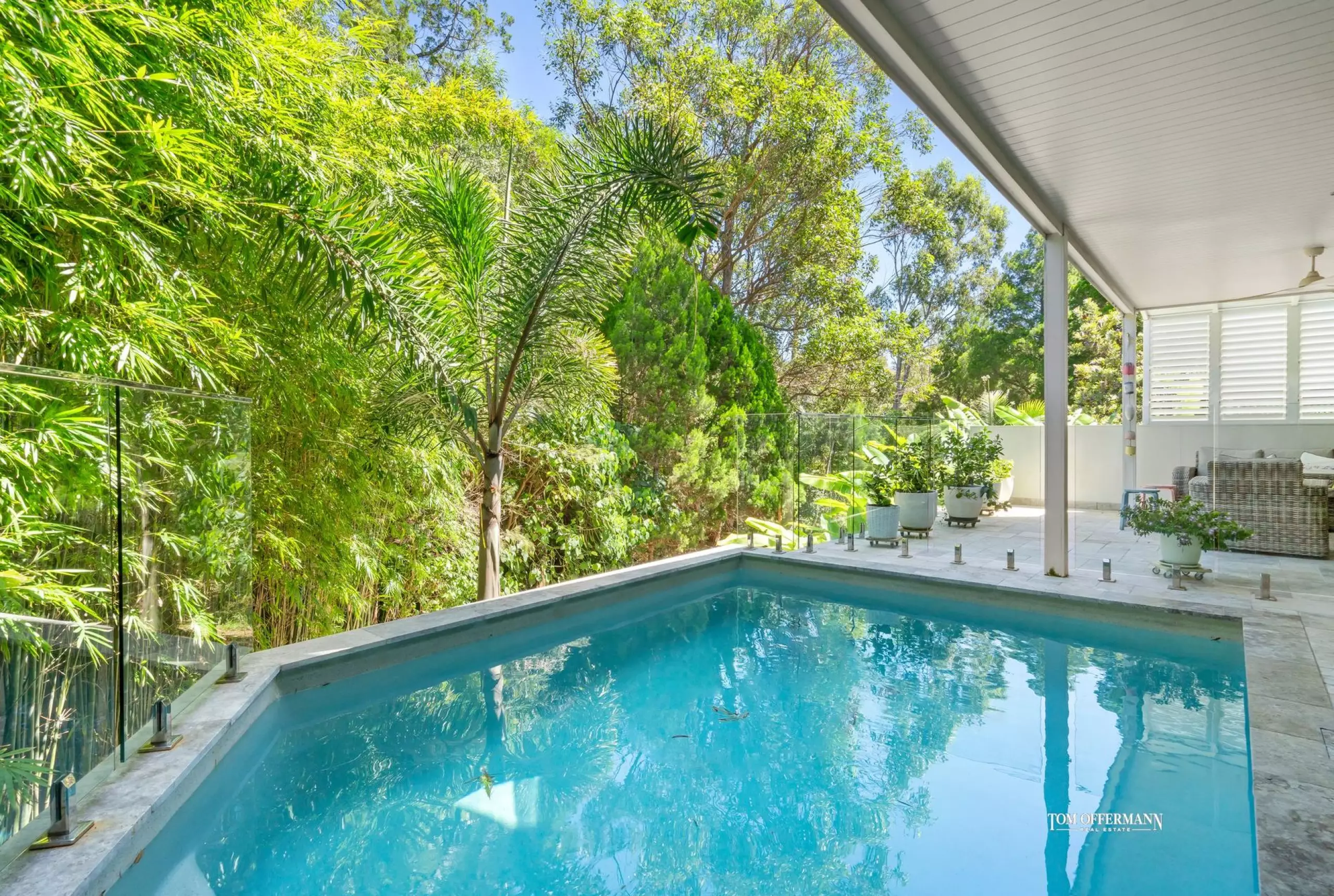 • Pool/Terrace: 5mx3.5m/5.1mx5.1m stone surround; 12.3mx2.7m undercover off living/dining spaces; both back onto nature reserve
