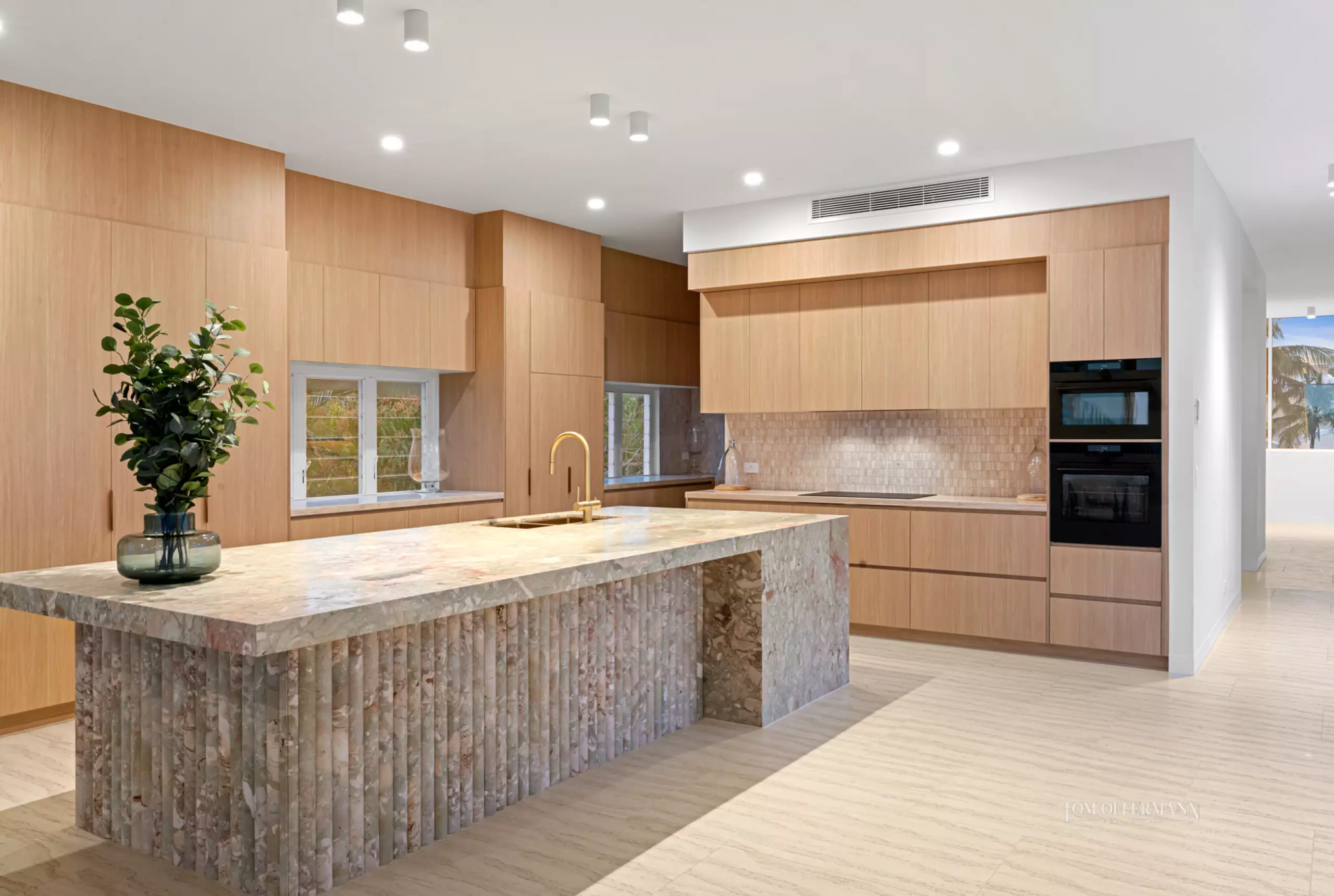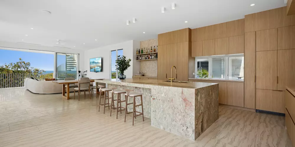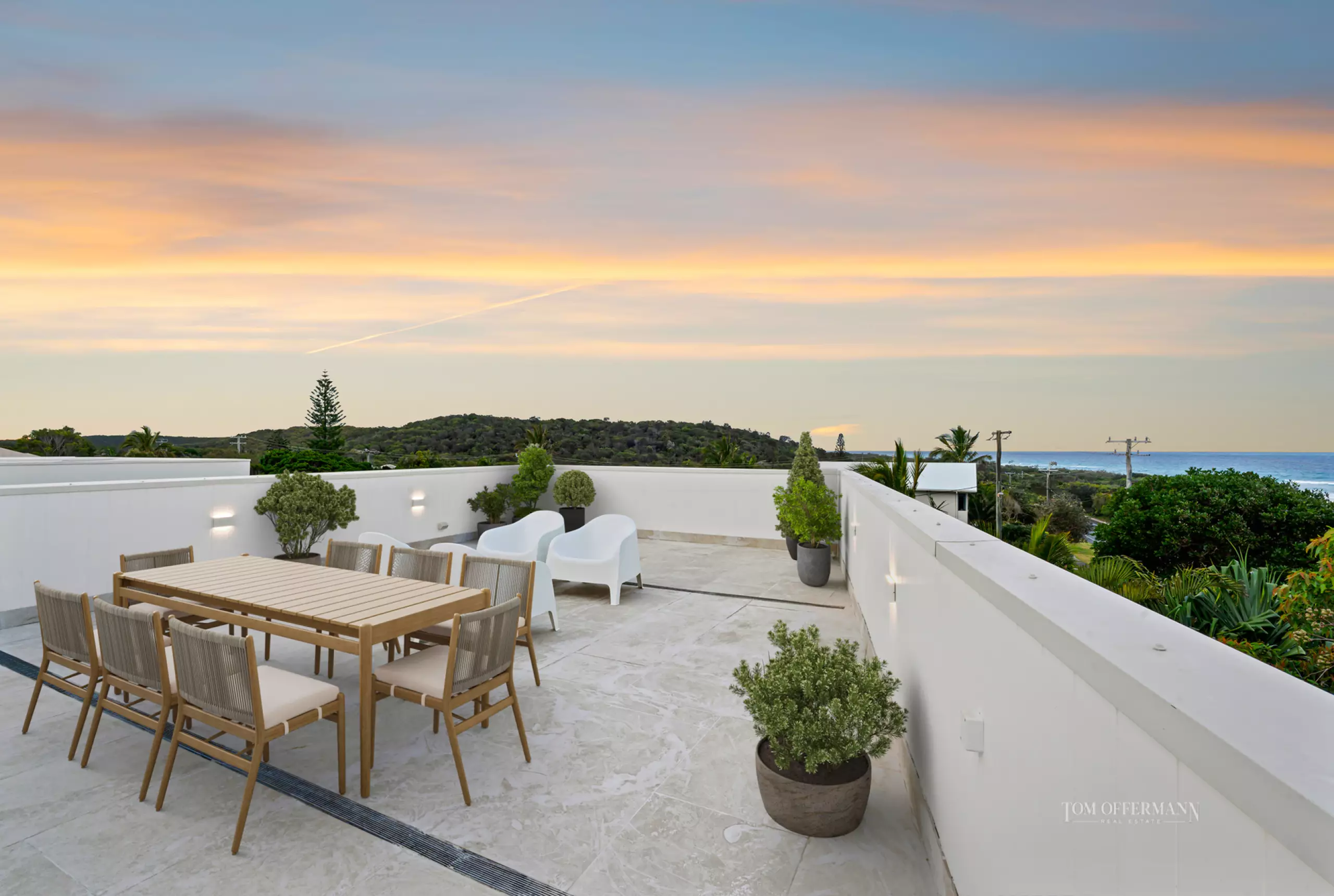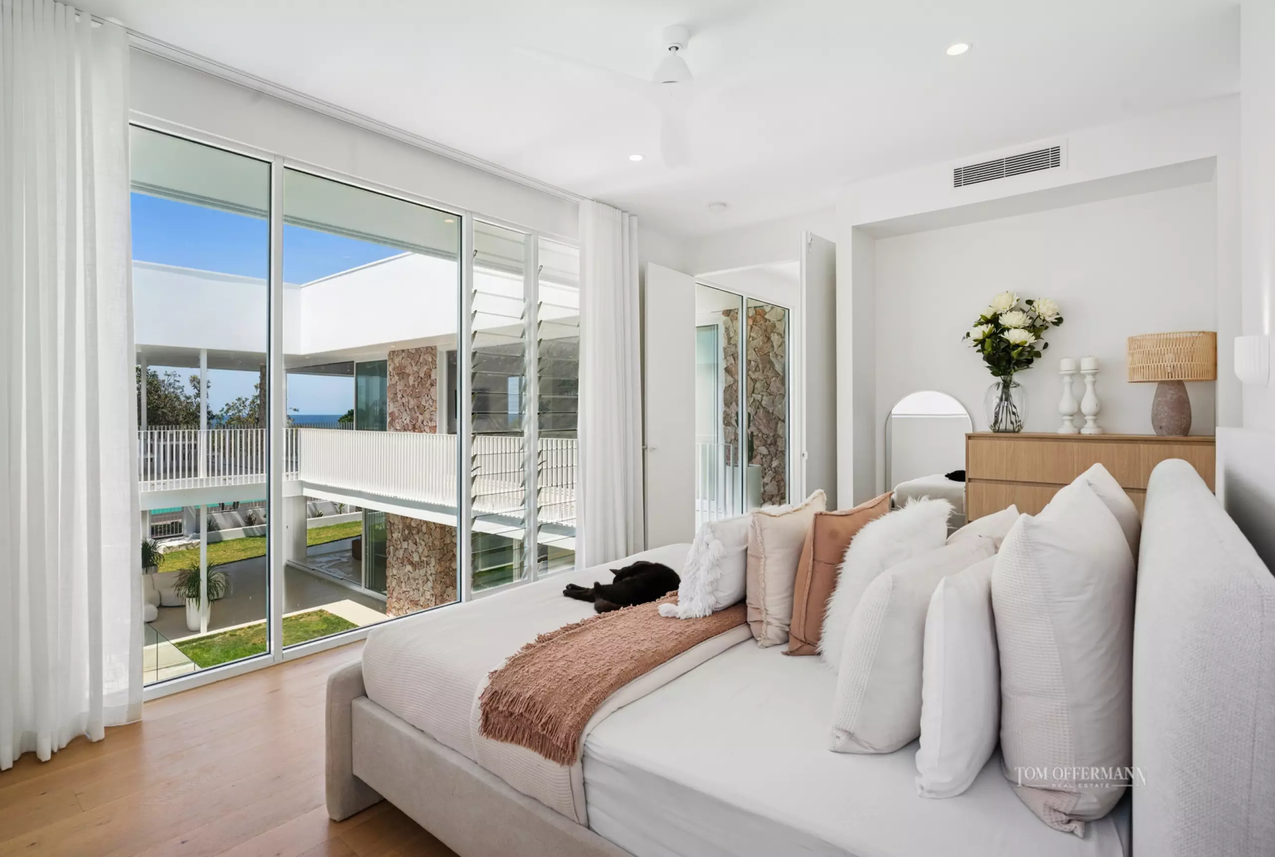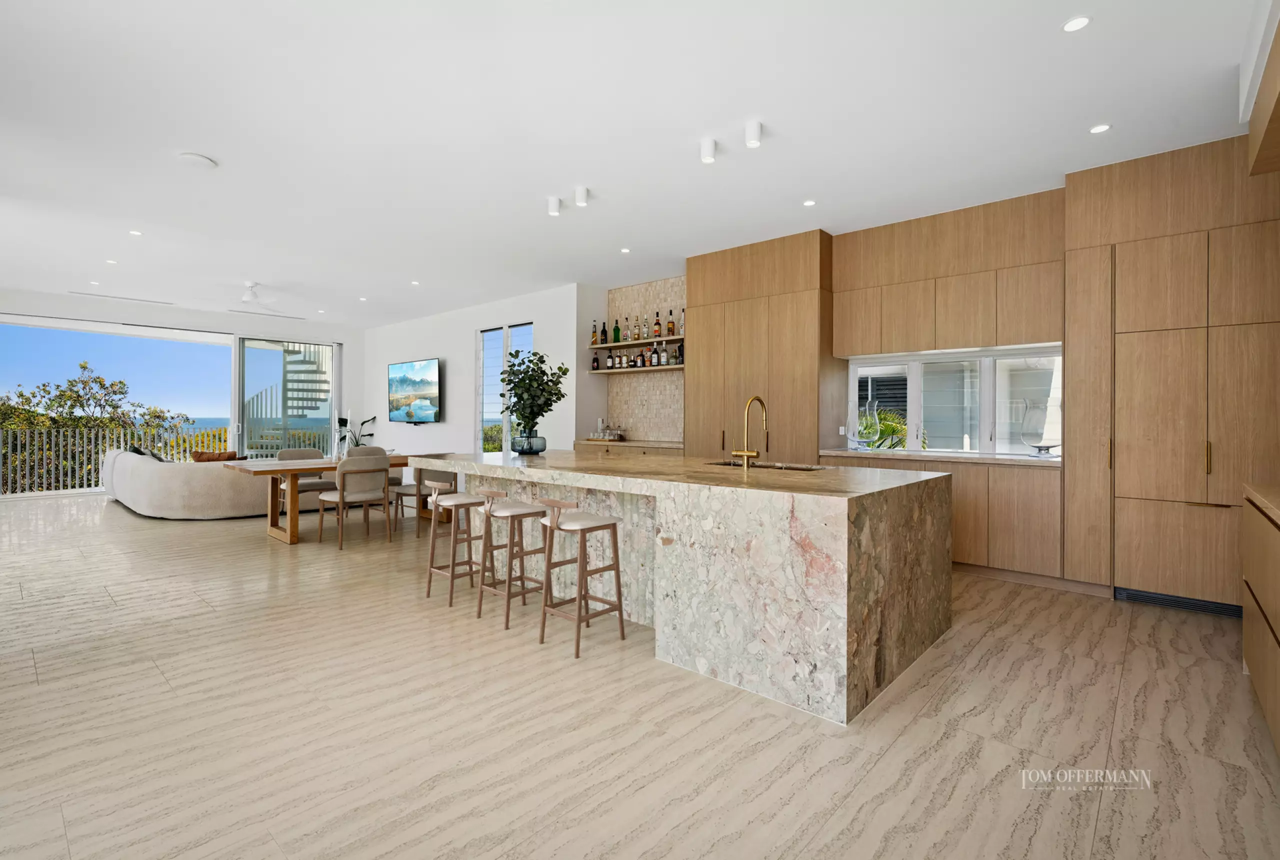 "What's not to love about a sparkling Palm Springs-inspired oasis which totally connects to the spectacular location," comments Tom Offermann Real Estate marketing agent Rebekah Offermann. "It also boasts unrestricted views of white-tipped waves and surf breaks in the Coral Sea and a breathtaking panorama extending north from Lions Headland in the Noosa National Park and south to the escarpment above Coolum. It is an exemplary residence where summery vibes linger year-round, and easy-going days are always high on the agenda. In the almost lost-world tradition of a safe, secure unrivalled lifestyle, here it is possible to lose yourself completely."