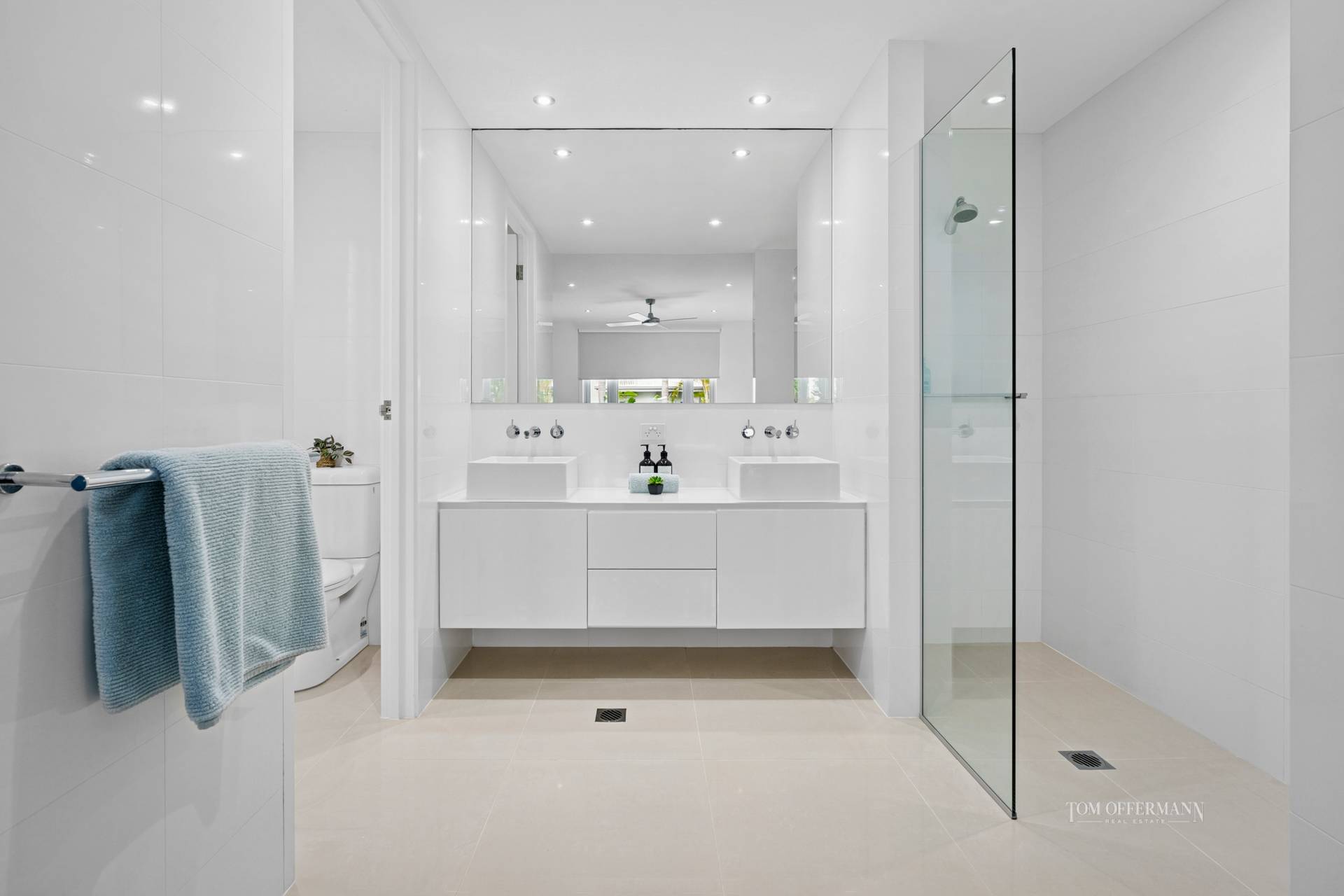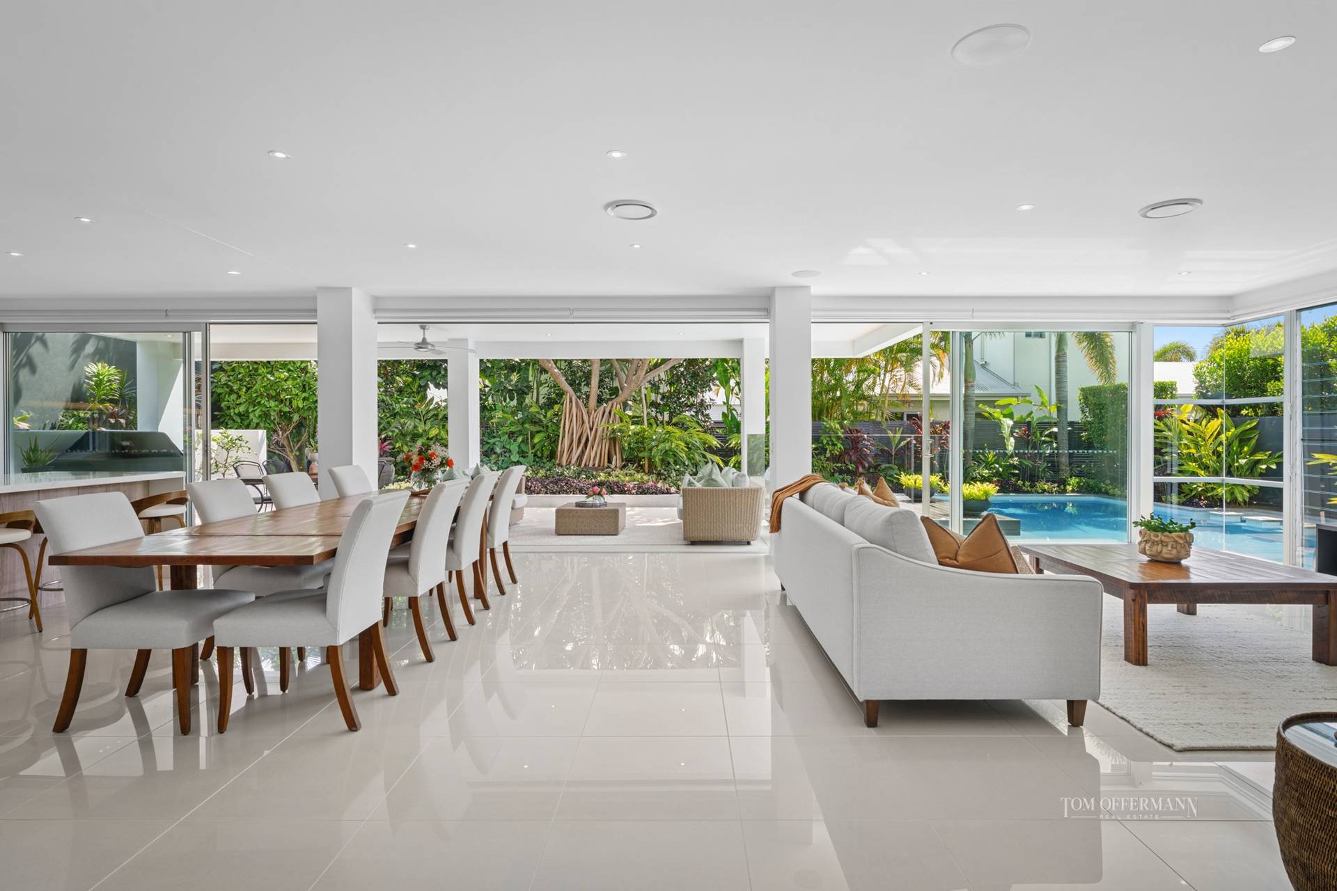 • Living Areas: open plan living & dining w slide-away doors to nth-facing private undercover terrace/outdoor room, sun terrace & pool, fringed by gardens; upper-level lounge/leisure space w wall of cabinetry; nth & east-facing terrace & views of Noosa Heads, Little Cove, Noosa National Park