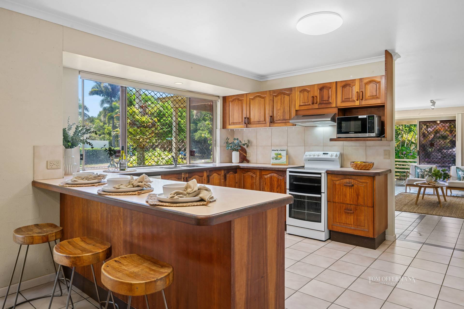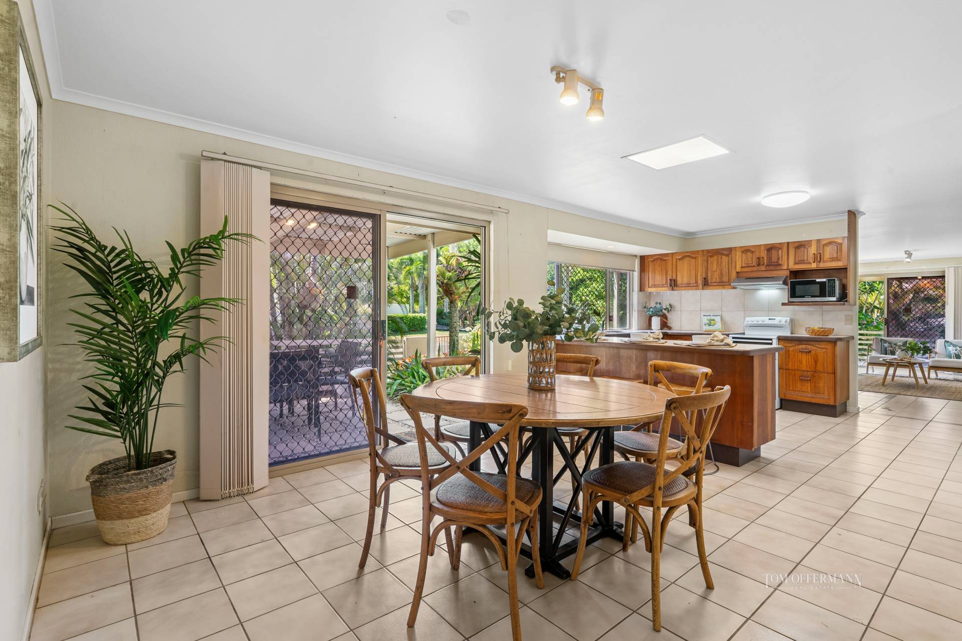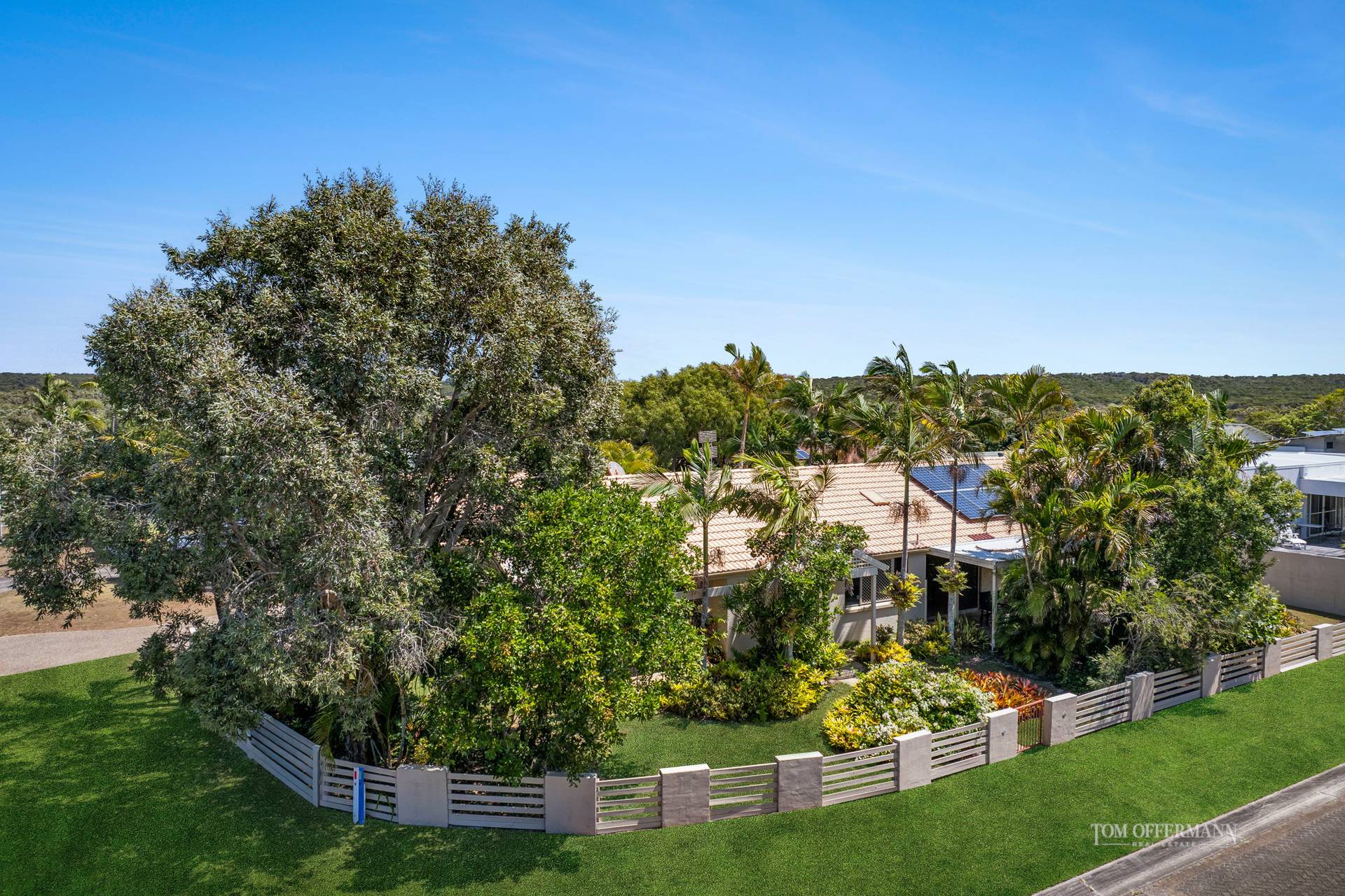 Tucked behind lush sub-tropical gardens brimming with swaying palms and vibrant bougainvillea, this single-level beach house sits proudly on a fantastic, larger than most 793m2 corner block. With its ideal north-facing orientation, the home is bathed in natural light, making every living space feel bright, warm, and welcoming.