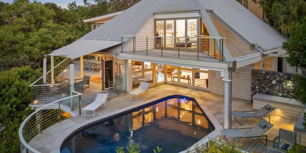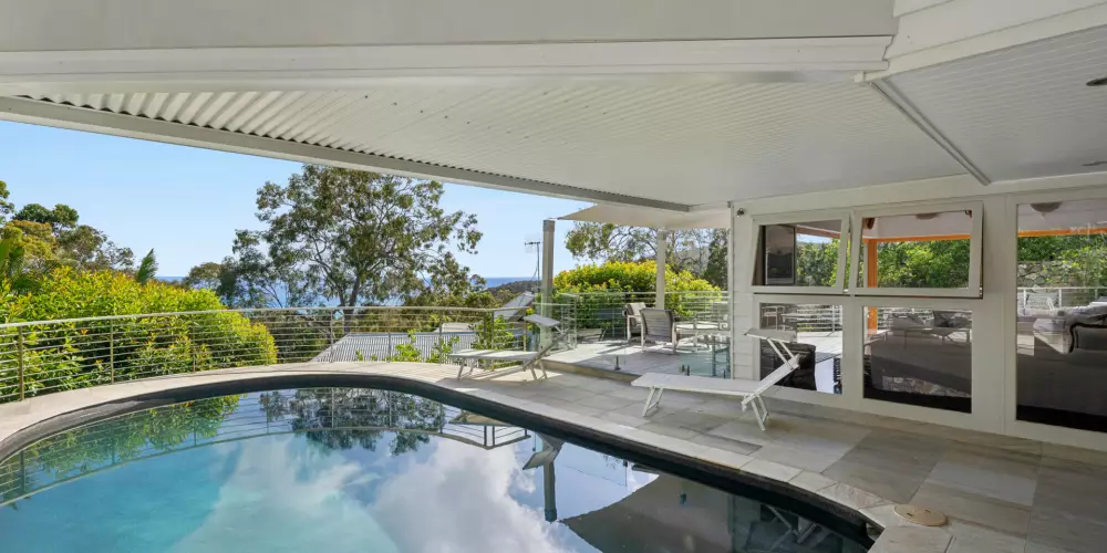 Mere minutes from alluring Little Cove Beach an eye-catching yet sense of mystique prevails momentarily at the arboured walkway with river-stone wall feature. Push aside the custom beech door into the foyer to a prestige beach house-inspired residence with three unique layers, cleverly built into the contours of the land, thus creating an idyllic connection to the great outdoors.