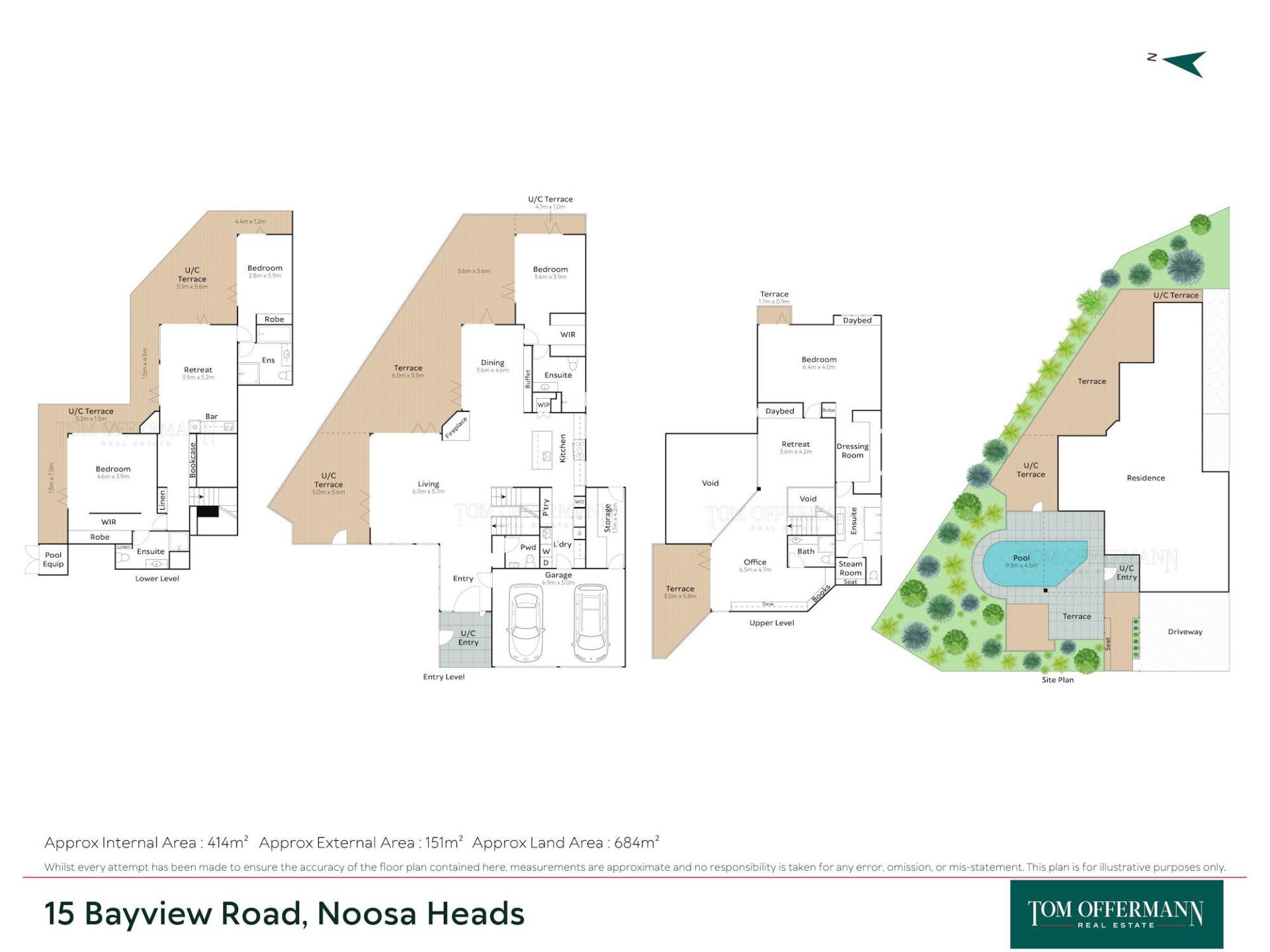• Bedrooms: 4 total all w ensuites; upper level premier suite retreat w NE terrace & wall of glass incl foldaway half windows; 2 day beds WIR/dressing room; ensuite w travertine walls & floors; latte-hued stone-topped single basin white cabinetry; steam room & dble shower; plus dedicated office space w custom cabinetry, bathroom & nth terrace; entry level bedroom w terrace to nth & east, ensuite & WIR; lower level 2 bedrooms w WIR/robe & ensuites; in between lounge/leisure space w bar & bookcase wall; all access nth terrace