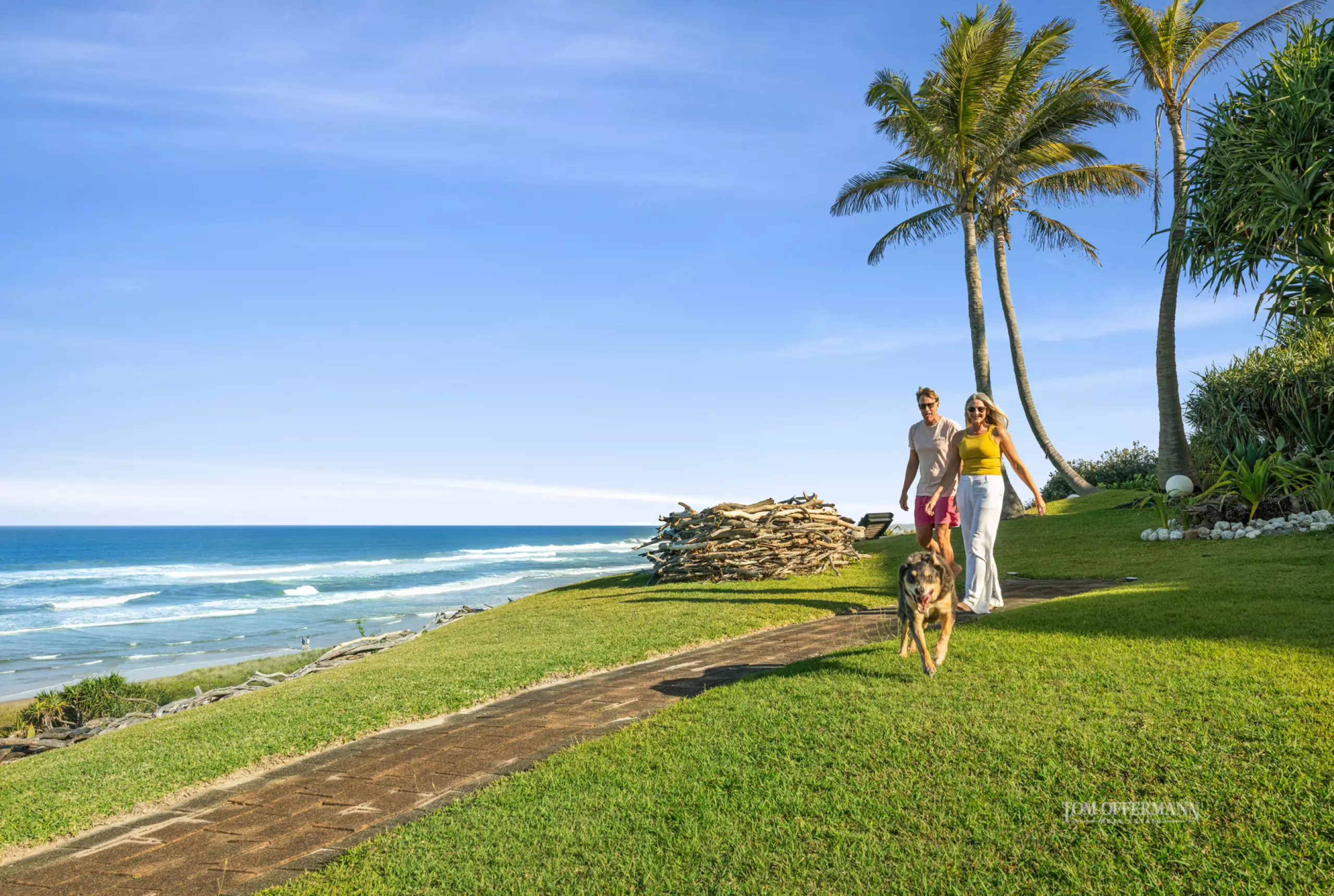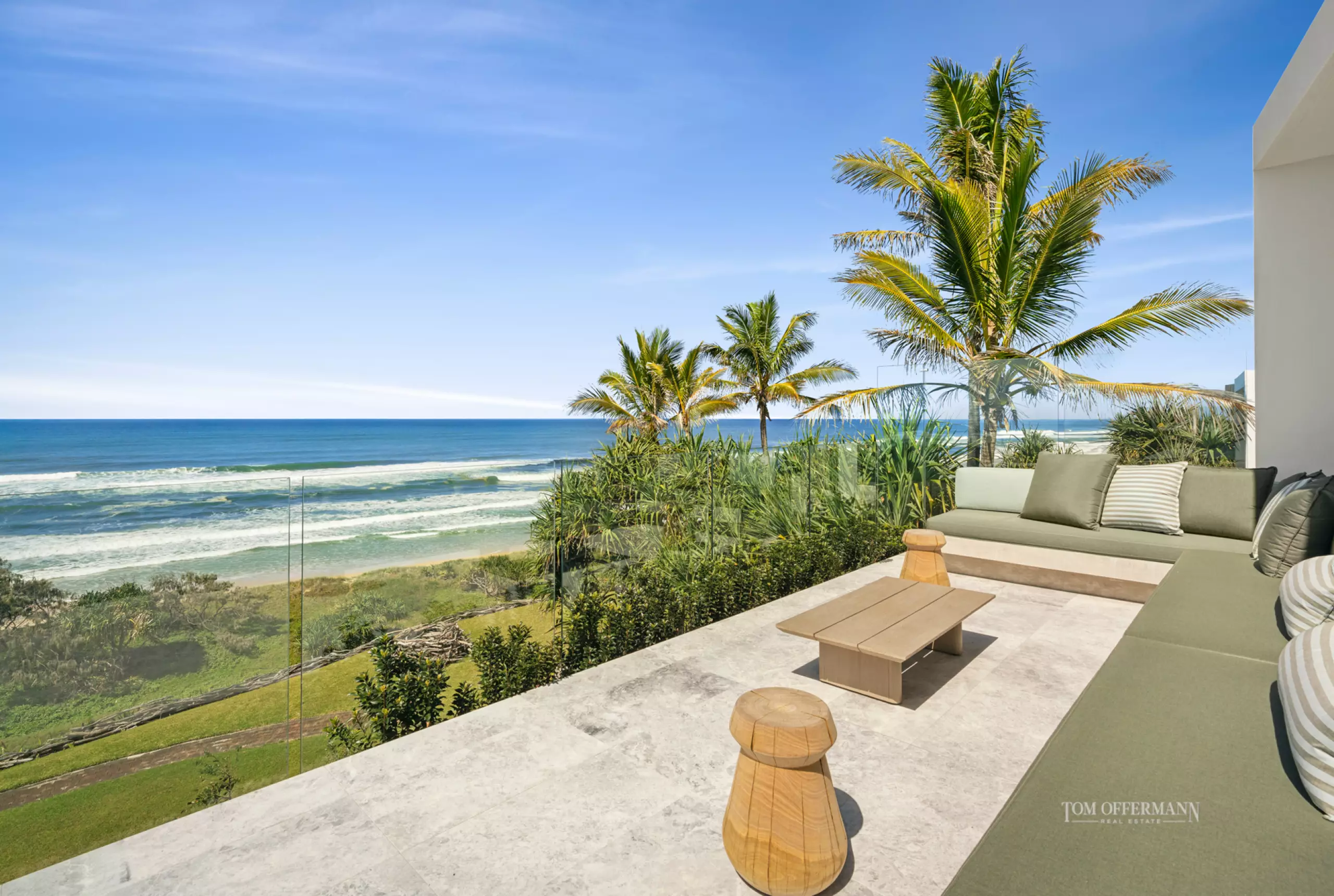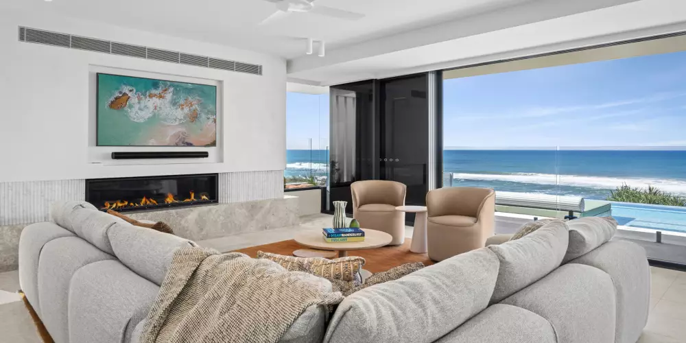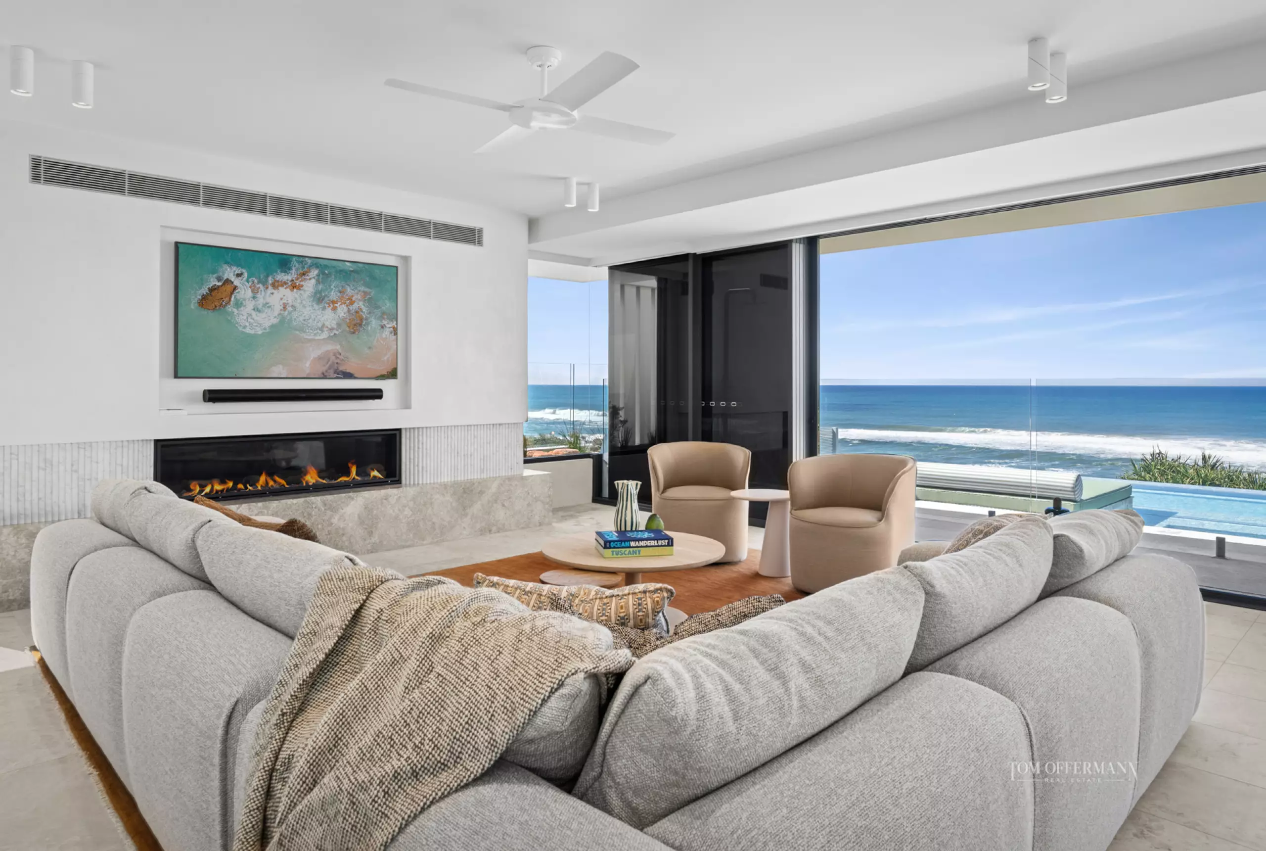 The head-turning luminescent pool and spa with lavish custom day beds takes luxuriating alfresco to a new level, as you ostensibly float over the beach and the turquoise Coral Sea. Entertaining whatever the season or reason on the dining terrace with outdoor kitchen is exciting, and a few steps below is the perfect spot for pre-lunch drinks with a dash each of stupendous views and salty breezes.