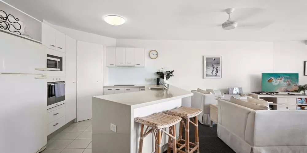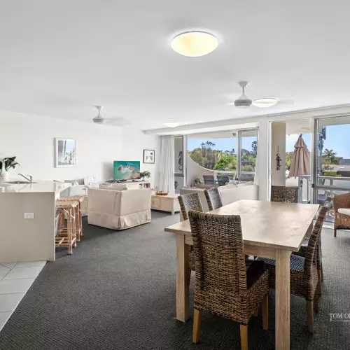 Elevated to catch cooling ocean breezes and bathed in glorious North -Easterly sunshine, this beachside apartment invites you to slow down, breathe deeply, and savour every moment. Life here can be as blissfully relaxed or effortlessly active as you desire, with the vibrant village just across the road and your toes in the sand in under 370 metres.