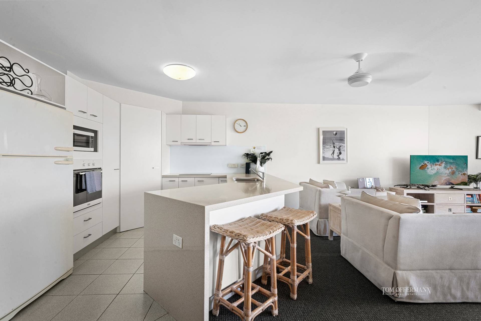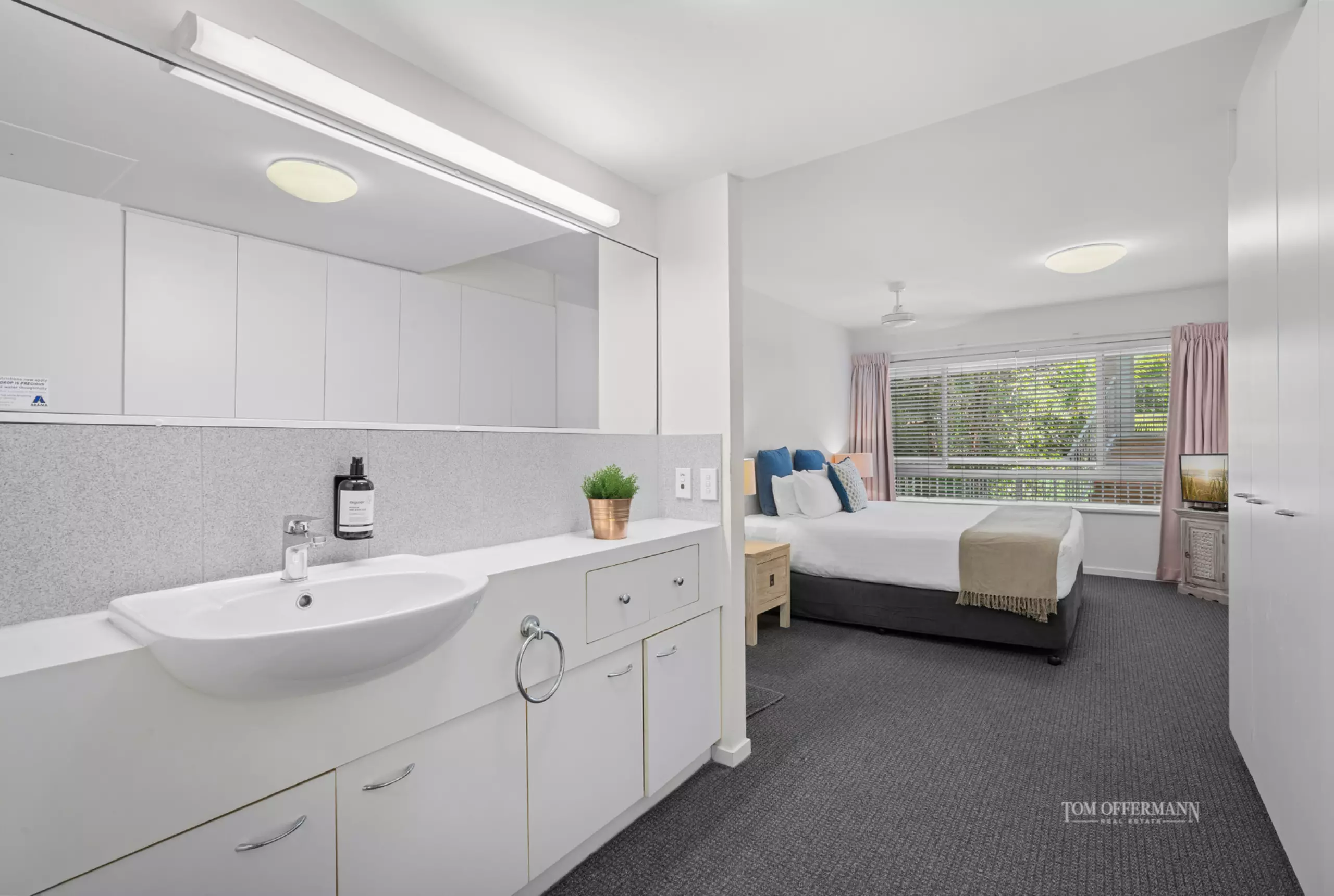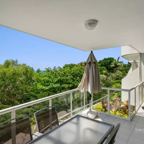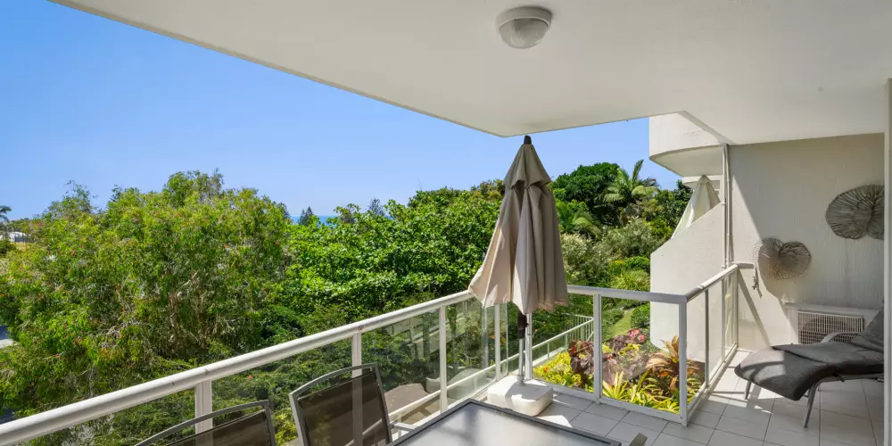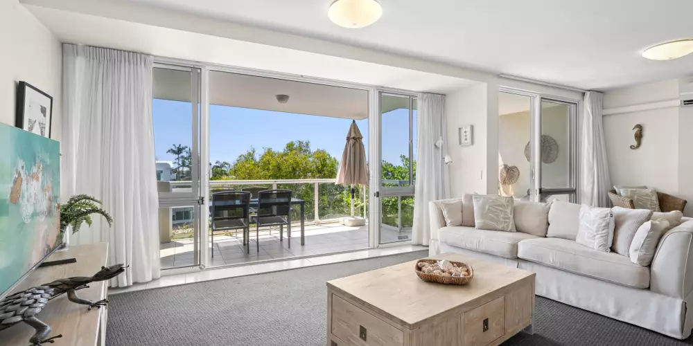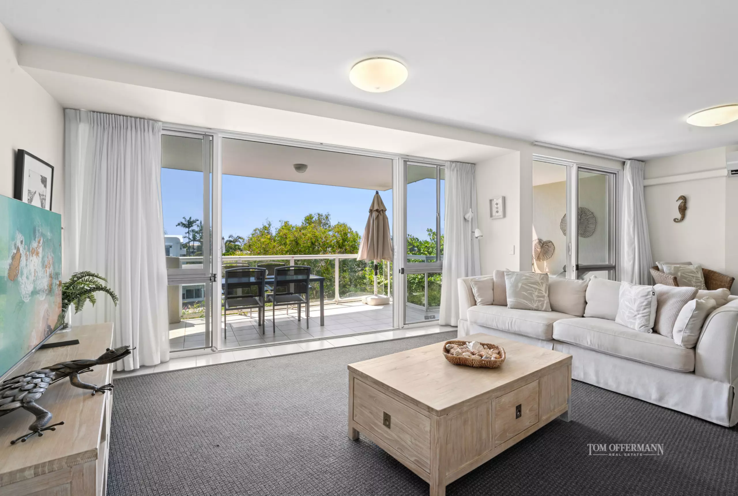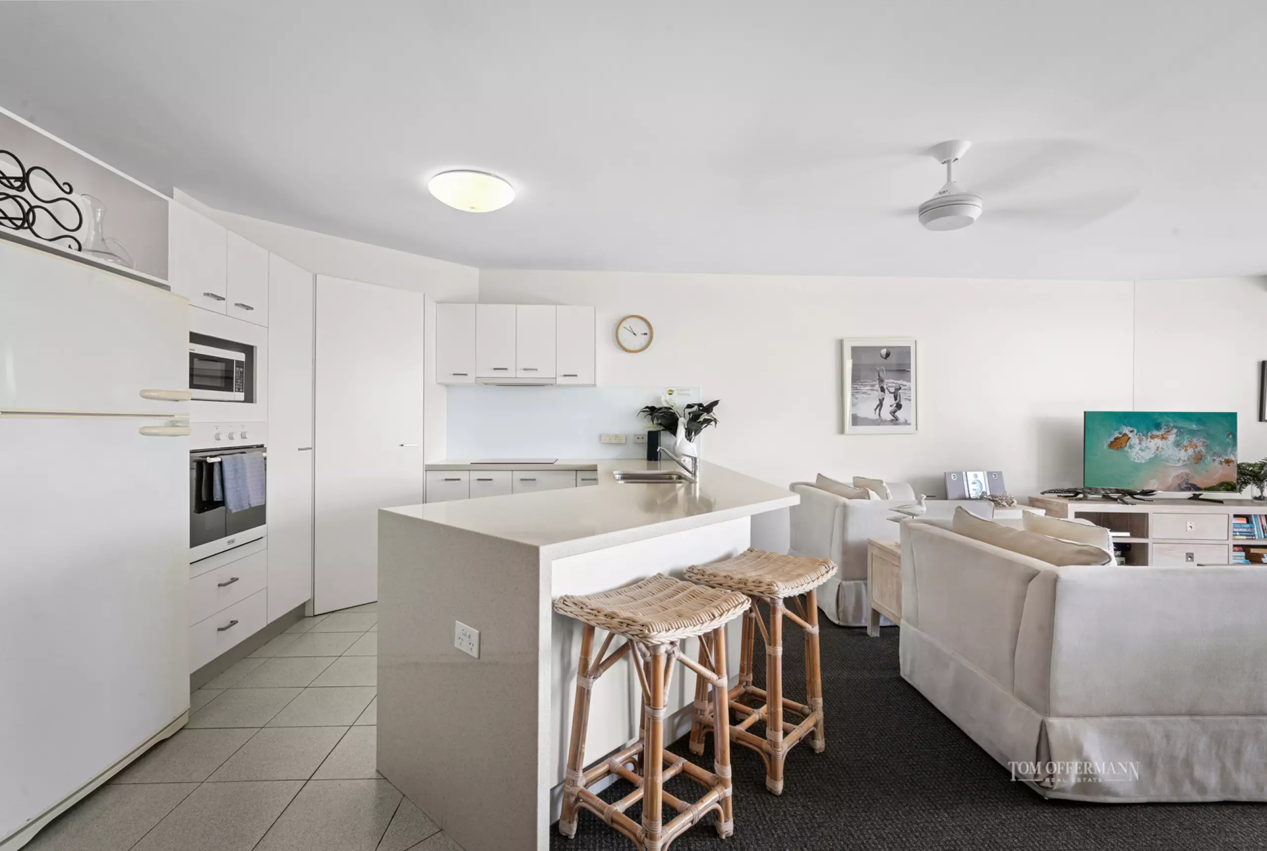 Inside, the apartment offers open-plan living, dining, and kitchen zones that flow seamlessly to a generous undercover balcony, perfect for entertaining or enjoying sunset drinks with a sea breeze in the air, surrounded by treetops and the sound of birdsong.