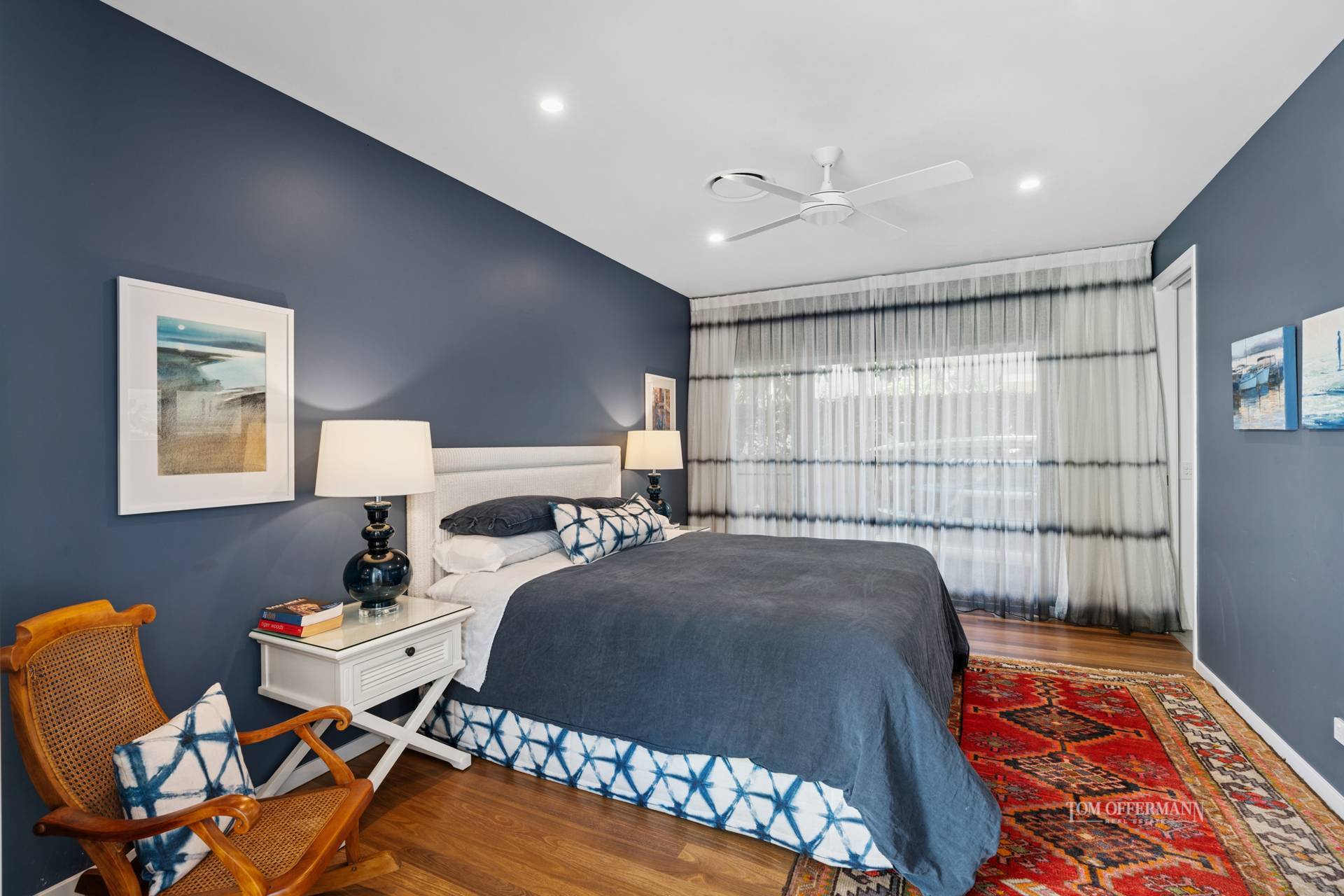Situated in its own wing upstairs, the luxurious master bedroom is bathed in natural light and enjoys views of the pool, a walk-in robe, and a spacious private ensuite with a soaking tub, enclosed toilet, and dual vanity.