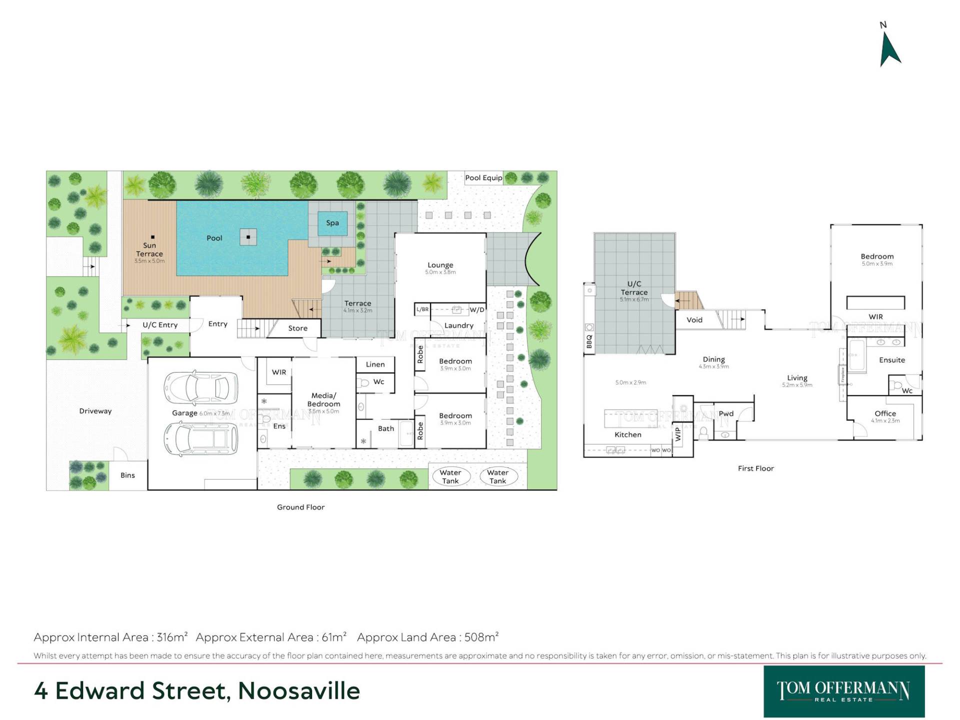 • Approx. Internal House Area: 316 m2; Approx. External Area: 61 m2