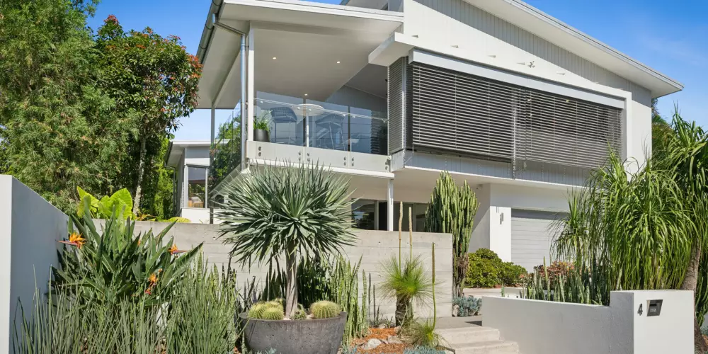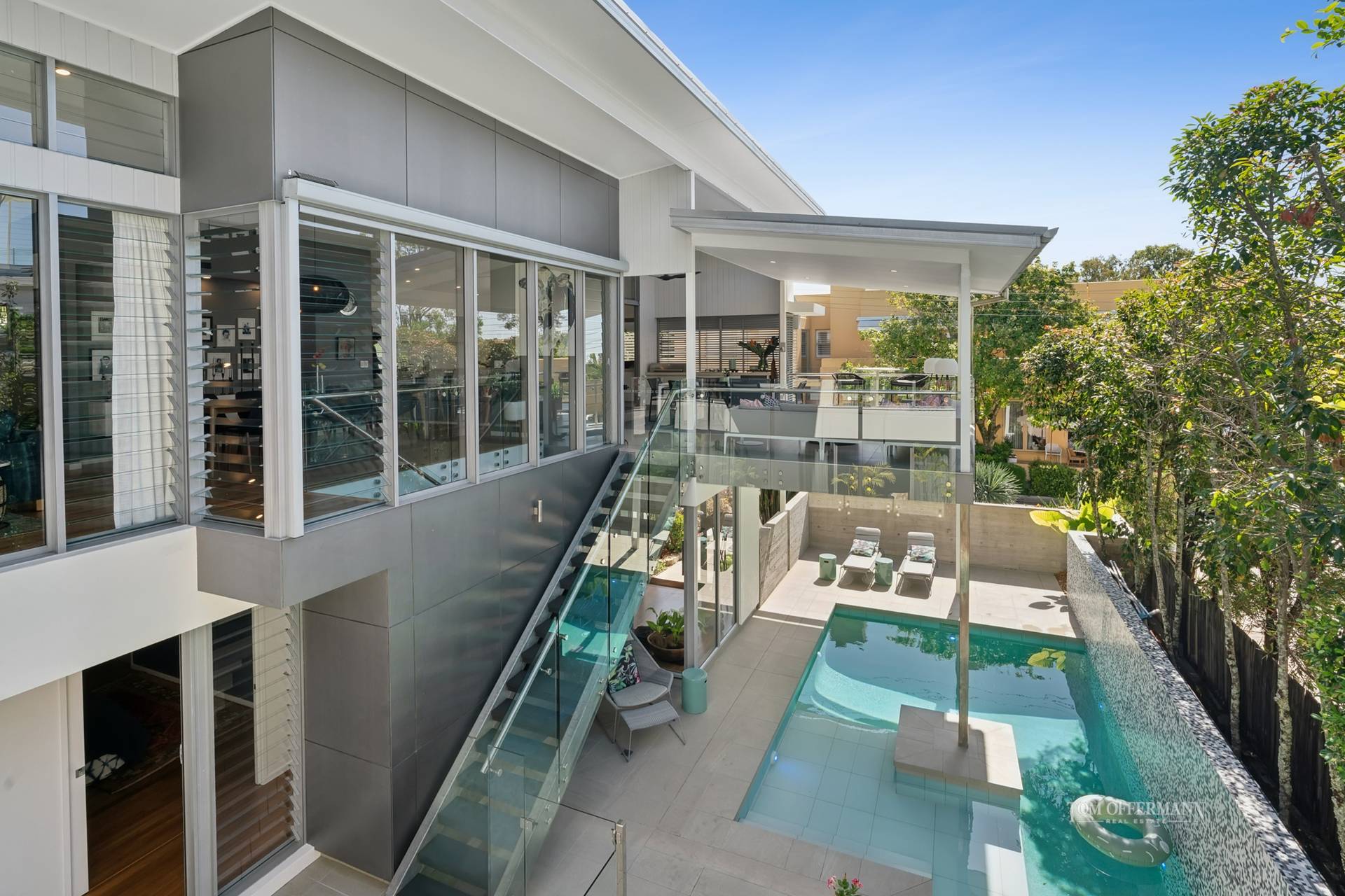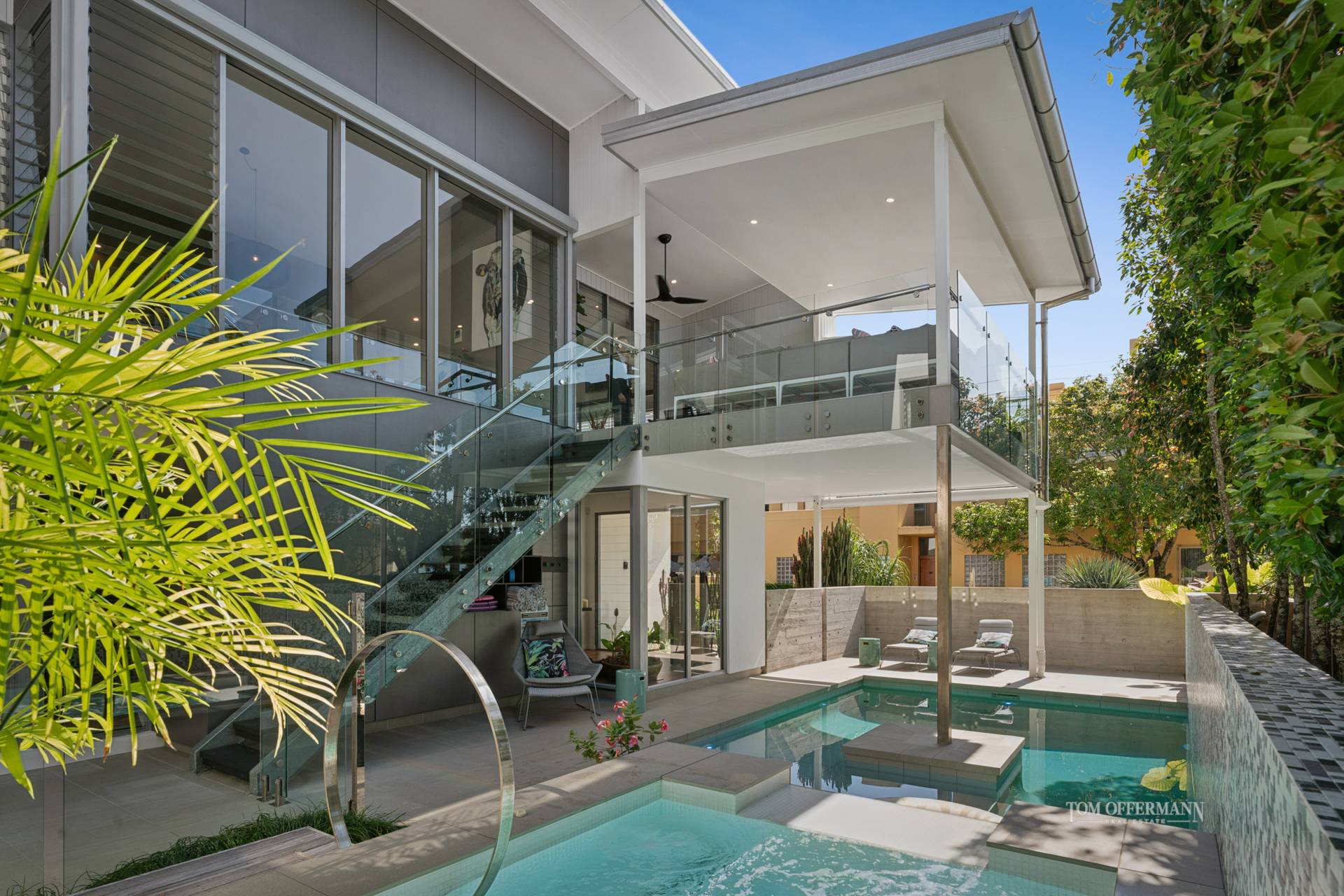 • About: Designed and built by Civic Steel; striking entry overlooking the pool; bespoke timber staircase; glass louvers enhance the coastal feel; ducted air conditioning; ceiling fans; stunning kitchen; high ceilings; 2 living areas; home office; alternative master suite downstairs