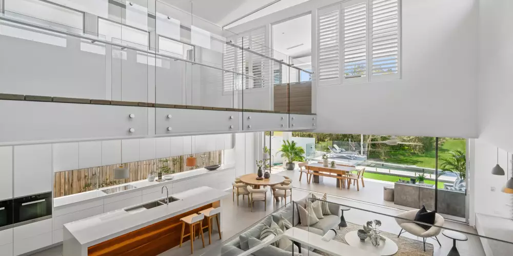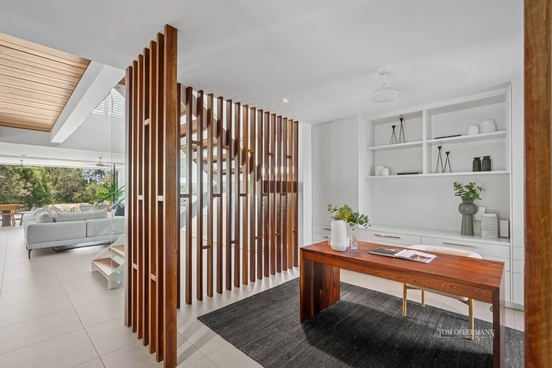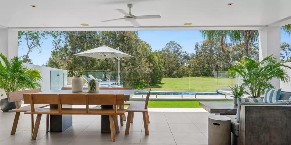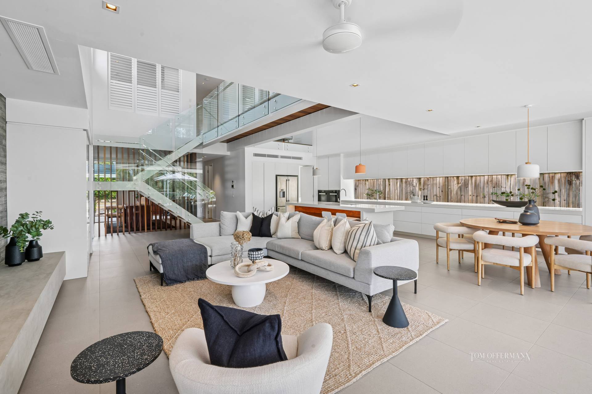 There's a seamless connection to the expansive undercover terrace, lawn area and shimmering pool. No reasons needed to entertain family and friends with such a mesmerising ever-changing scene, proximity to the white sand foreshore, luminous blue-green of the Noosa River with bobbing leisure craft, and the picturesque Noosa North Shore beyond.