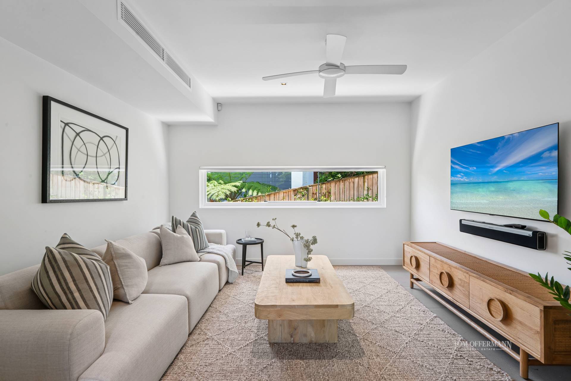 A media room, study and a bathroom styled in a similar fashion to upstairs, are on the ground floor. There's also a two-car garage with internal access.
