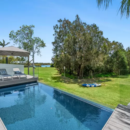 "Move in now and don't forget to bring kayaks and canoes, which are easily stored in a dedicated space under the pool in readiness for the river, which is just across the grassy park. This part of the Noosa River is also known for its crabbing and fishing so why not bring the rods, maybe a tinnie too for boating adventures up stream."