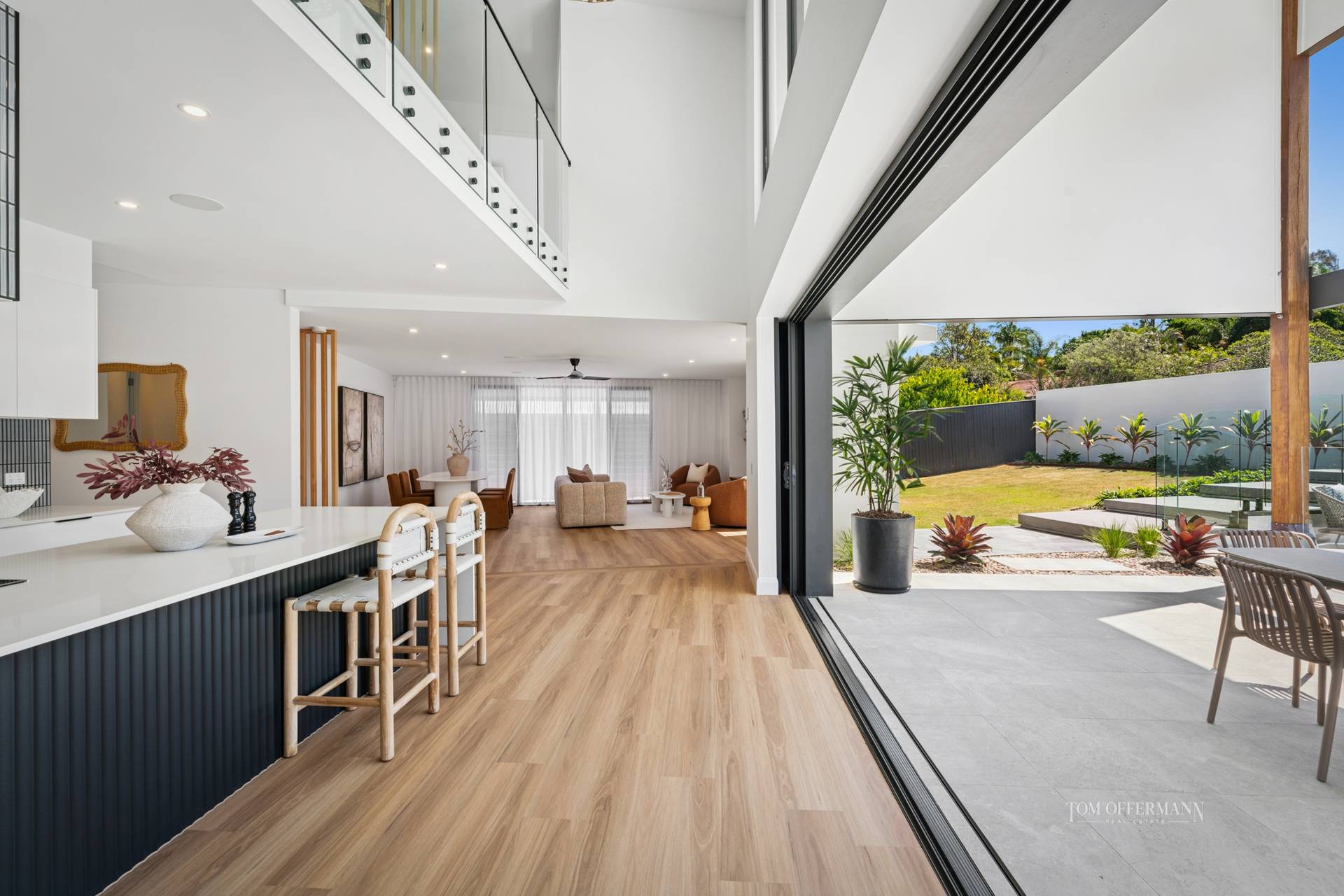 Soaring ceilings including a double height architectural void to maximise the sense of space and light; and an integrated indoor/outdoor flow that is fluid and seamless. This is a residence designed for relaxation, celebration, and endless joie de vivre.