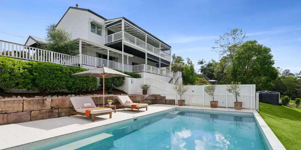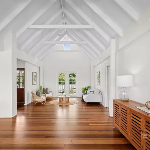 Inside, every room hums with a quiet charm. The flicker of the fireplace, the warm timber floors underfoot and the classic disposition combine effortlessly with modern fixtures, honest textures and state-of-the-art Miele appliances. Though its beauty feels almost nostalgic, its convenience is decidedly precise. Just minutes to the vibrant village of Eumundi and its world-famous markets, 20 minutes to the golden sands of Noosa Main Beach, and only moments to the Bruce Highway for fluent arterial connection.