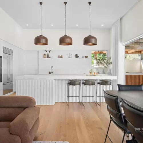Immersed in the tranquility of nature and framed by the lush canopy of Spoonbill Park Reserve this exquisite residence is a rare fusion of artistry, craftsmanship, and understated coastal elegance. Every space has been reimagined and meticulously redesigned to the highest standard, drawing on the earthy warmth of Mexican, Kenyan and contemporary design influences to create a home that feels both sophisticated and soulful. From the moment you arrive, there's an unmistakable sense of calm. Light-filled interiors, soaring four-metre ceilings, and fluid indoor–outdoor living flow seamlessly, capturing both privacy and serenity. Newly landscaped by In Style Habitat, the grounds reflect the home's refined natural aesthetic, offering a peaceful connection to nature.