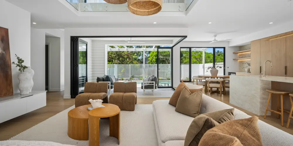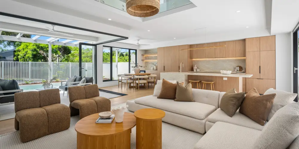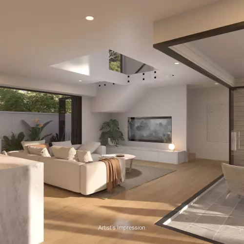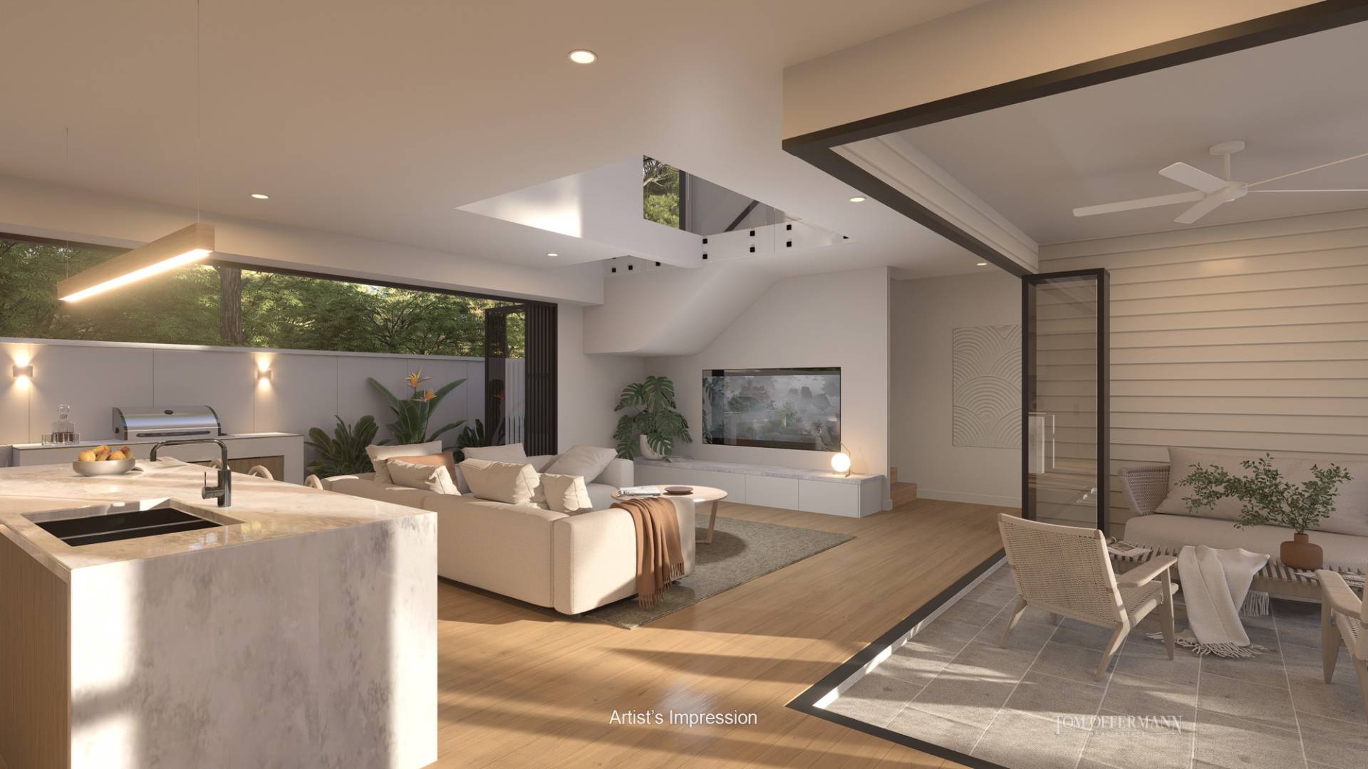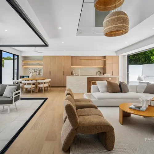 Each home enjoys its own private street frontage. Residence 2A is accessed from Banksia Avenue and Residence 2B is accessed from Jan Street, which ensure absolute independence. Abundant natural light, accentuating the interplay of warm natural finishes and clean architectural lines. Interiors are understated yet sophisticated, anchored by premium materials and meticulously considered detailing.
