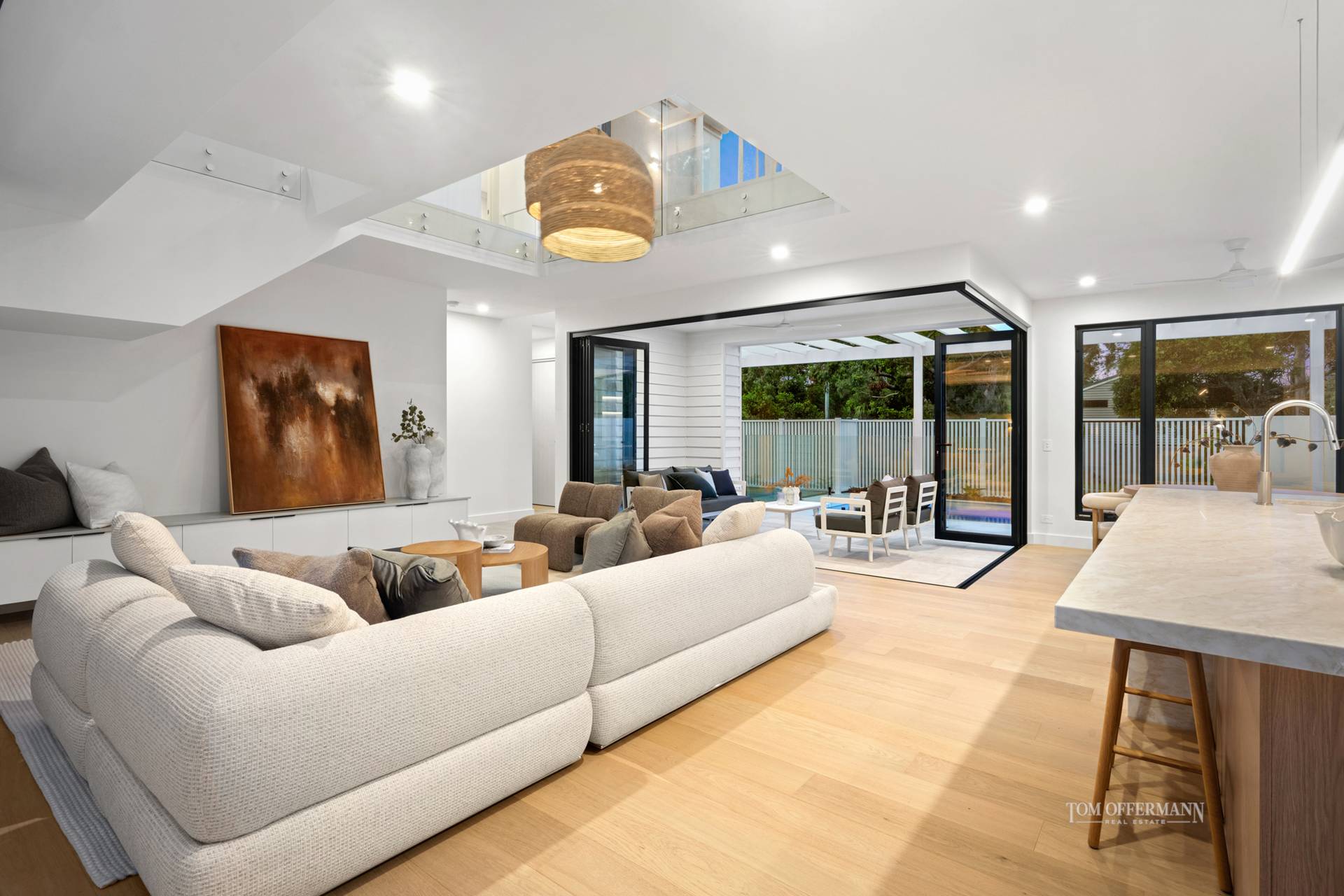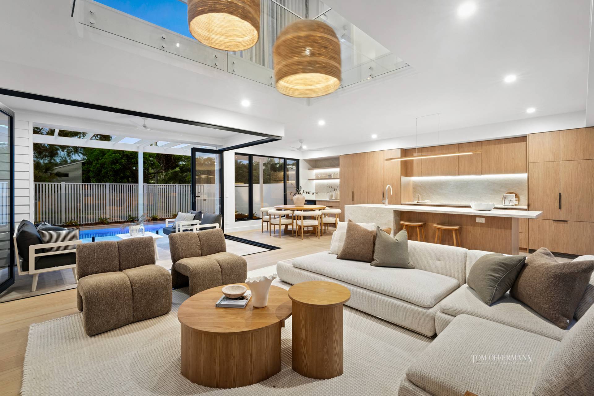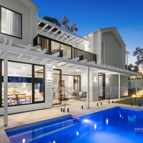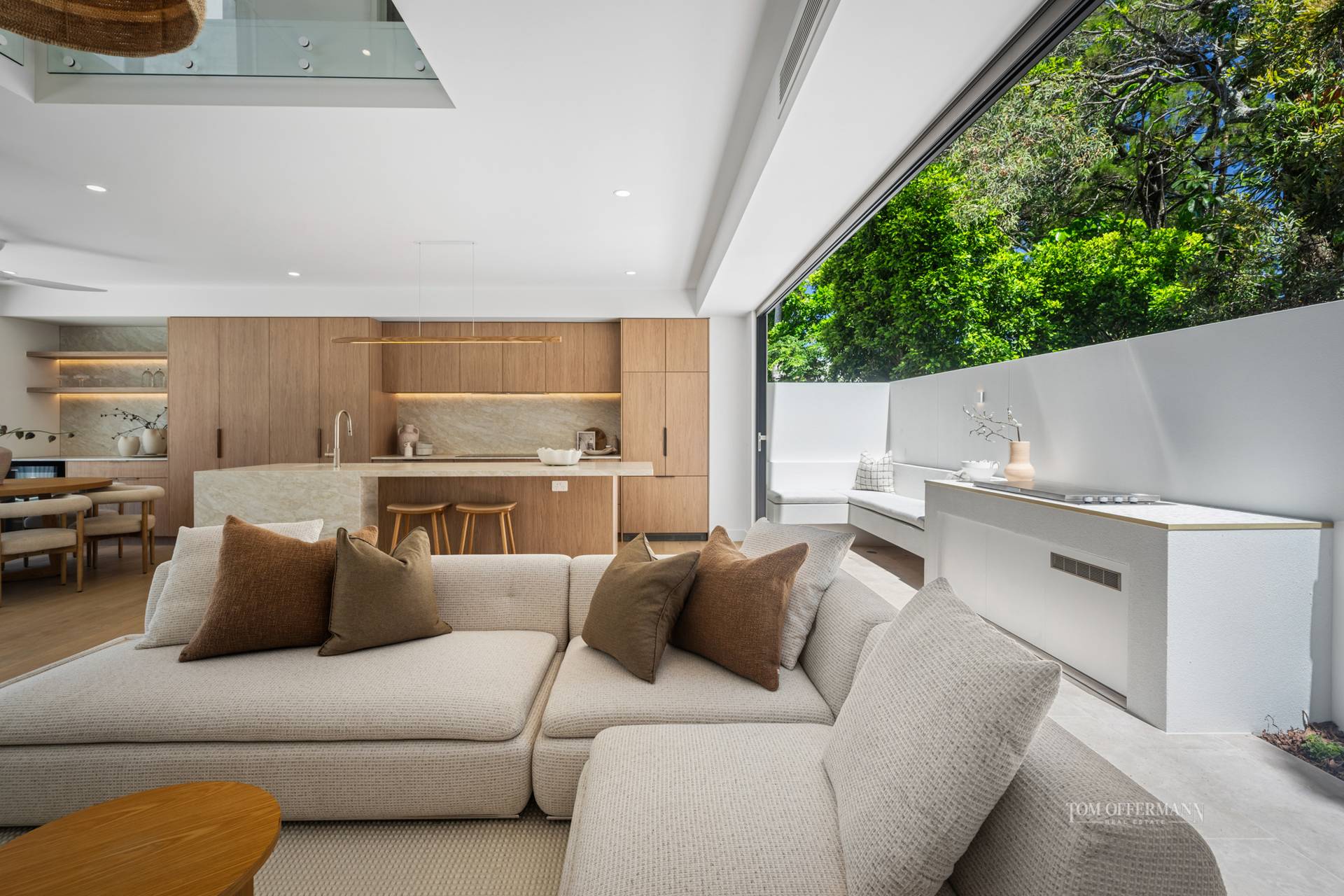 Each home enjoys its own private street frontage. Residence 2A is accessed from Banksia Avenue and Residence 2B is accessed from Jan Street, which ensure absolute independence. Abundant natural light, accentuating the interplay of warm natural finishes and clean architectural lines. Interiors are understated yet sophisticated, anchored by premium materials and meticulously considered detailing.