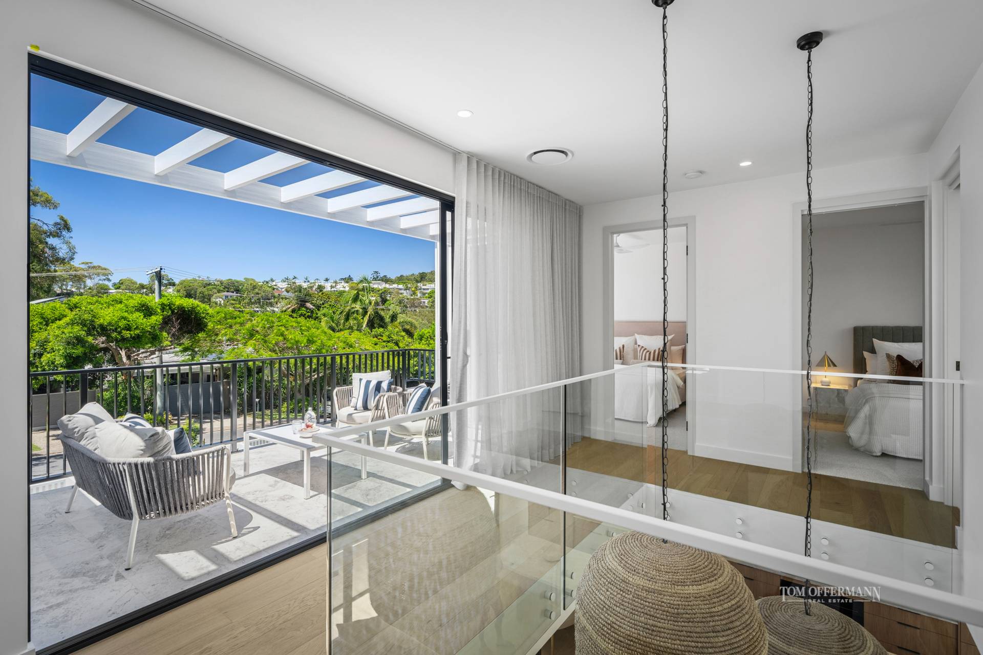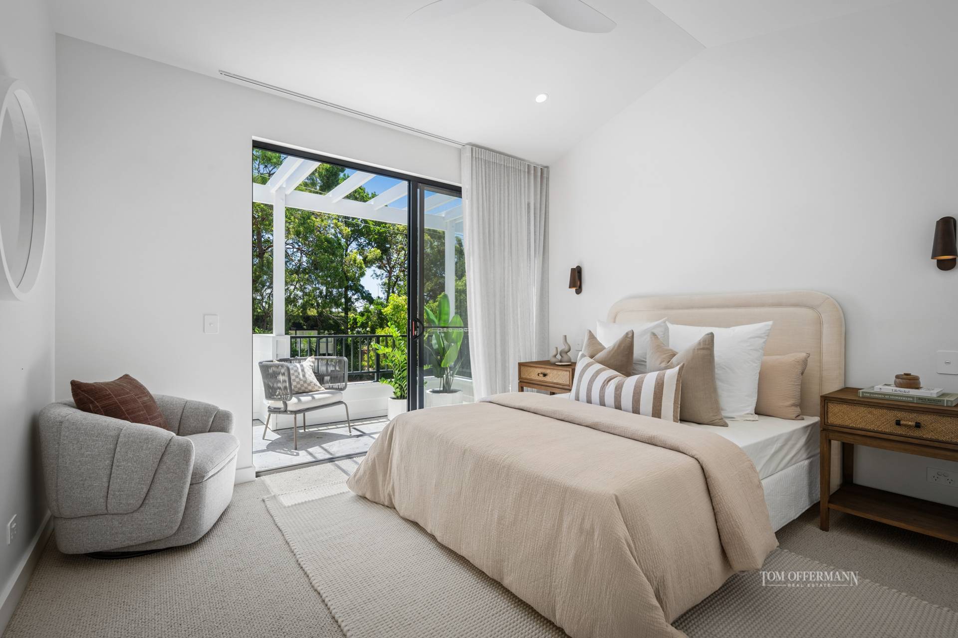 Upstairs, three well-proportioned bedrooms and two refined bathrooms form a private retreat away from the social spaces below. The premier bedroom includes its own secluded terrace and is thoughtfully separated from the additional bedrooms by a breezeway, heightening privacy and comfort.