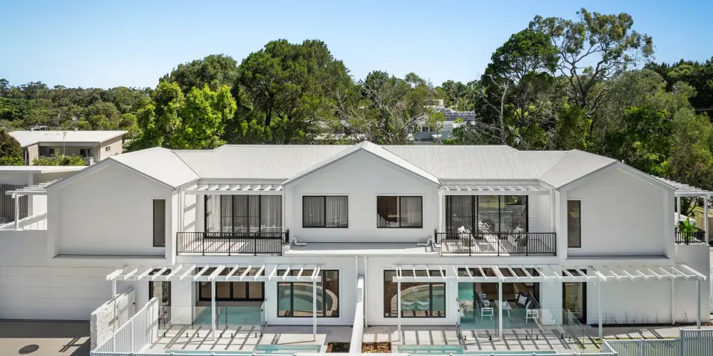 Centrally positioned within a leafy enclave of Noosa Heads is Alabaster Sands, two newly built, dual-level residences crafted for a refined Noosa lifestyle. Just moments from Noosa Junction's dining, retail and entertainment precinct, and only minutes from Laguna Bay and Hastings Street, the location delivers exceptional convenience in a coveted coastal setting.