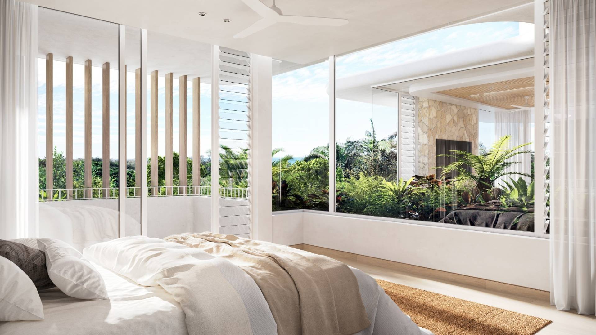 The ground floor apartments each boast an exclusive sun-drenched inground pool and garden; and the first-floor apartments each have two separate terraces, with the premier suite flowing out to its own private terrace. The floor plans have been exquisitely crafted to complement the Queensland lifestyle and climate, with inside/outside flow so integrated there is a calming, palpable sense of floating from one zone to the other.
