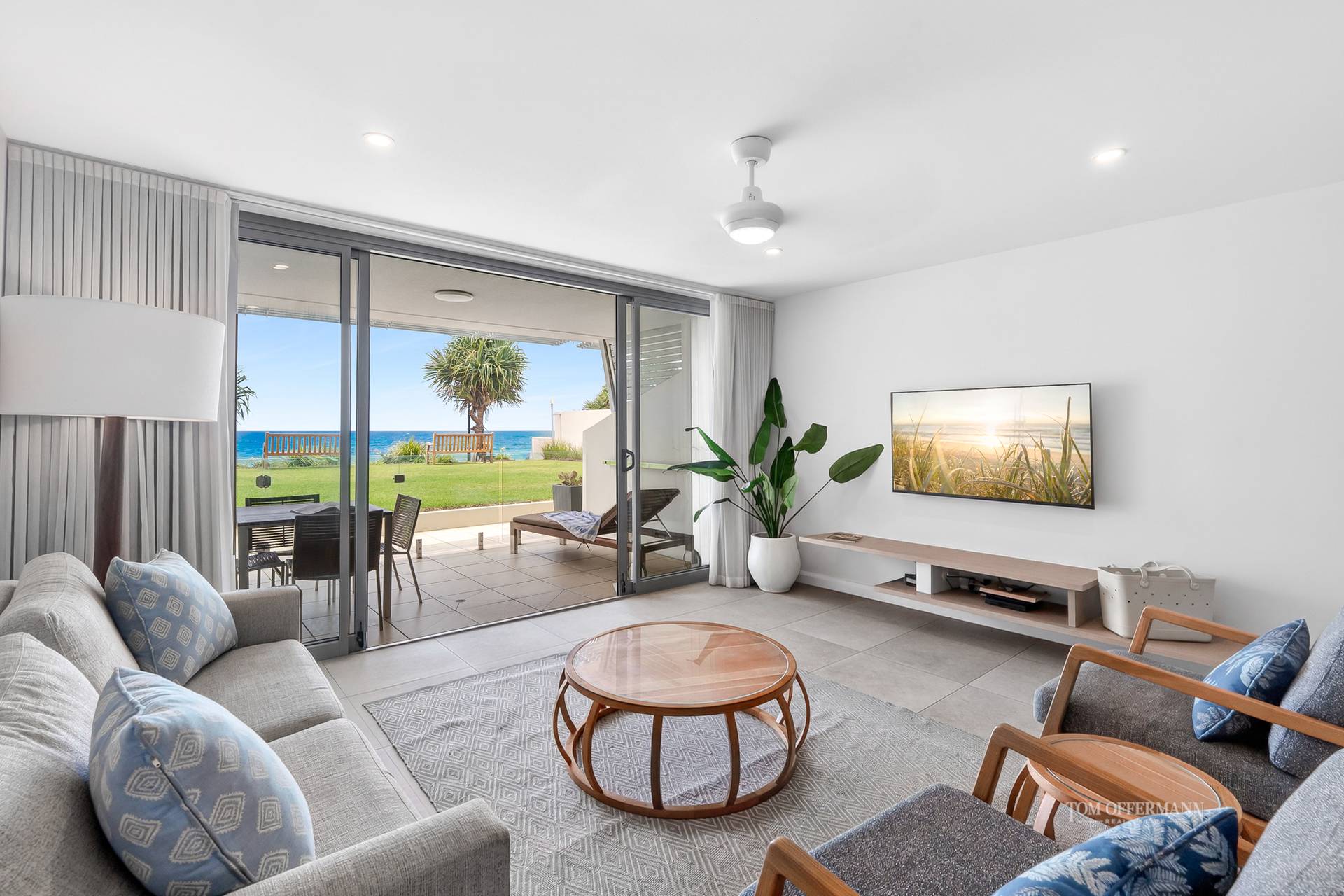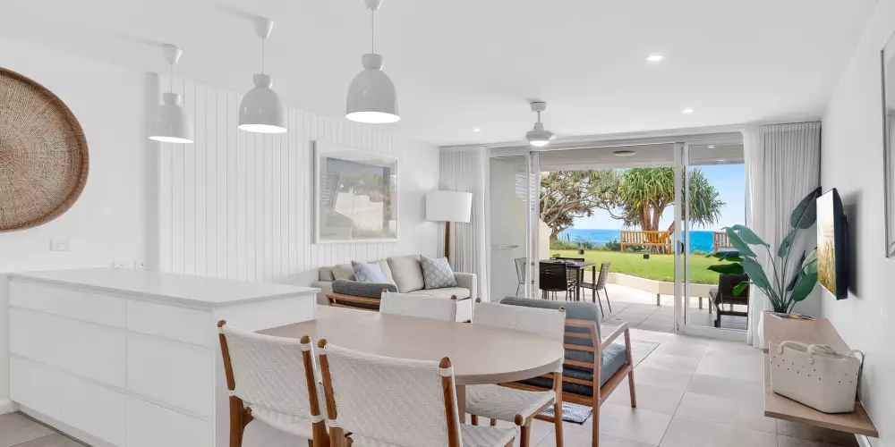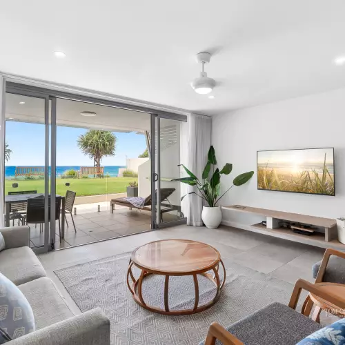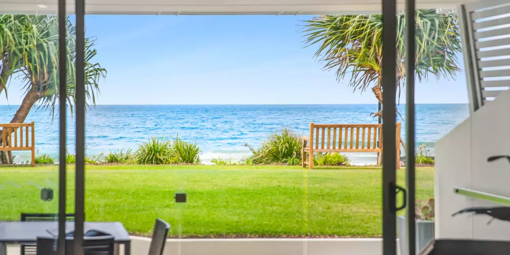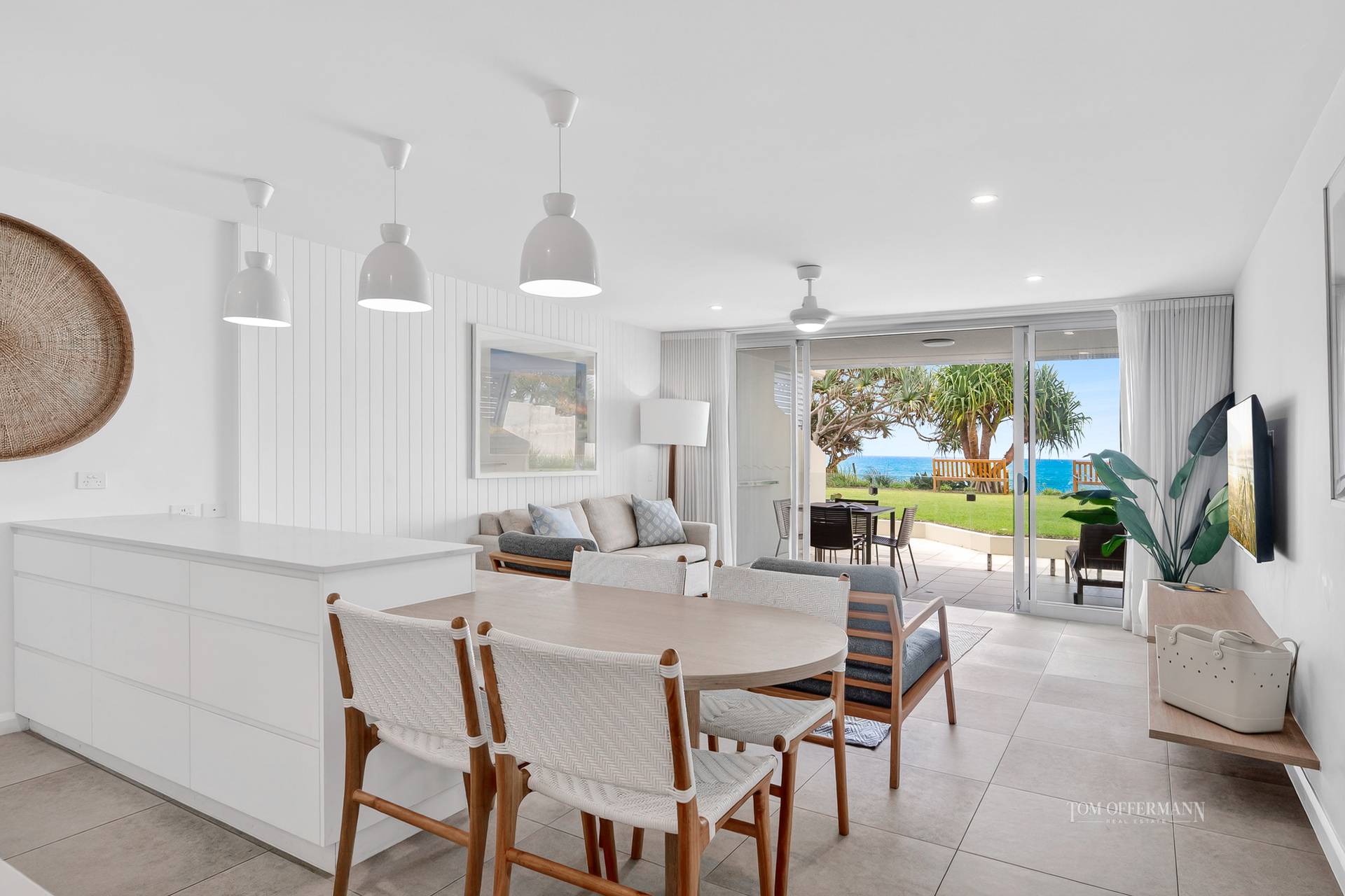 Step outside and feel the soft grass beneath your feet with the grassed courtyard extending from the terrace. Take a refreshing dip in the exclusive beachfront pool, surrounded by tropical landscaping with views of First Point. The pristine sand, gentle waves and picturesque views are just moments away from this surreal oasis. A serene retreat where sun-kissed shores meet sparkling blue waters. Experience the beauty of nature right at your doorstep!