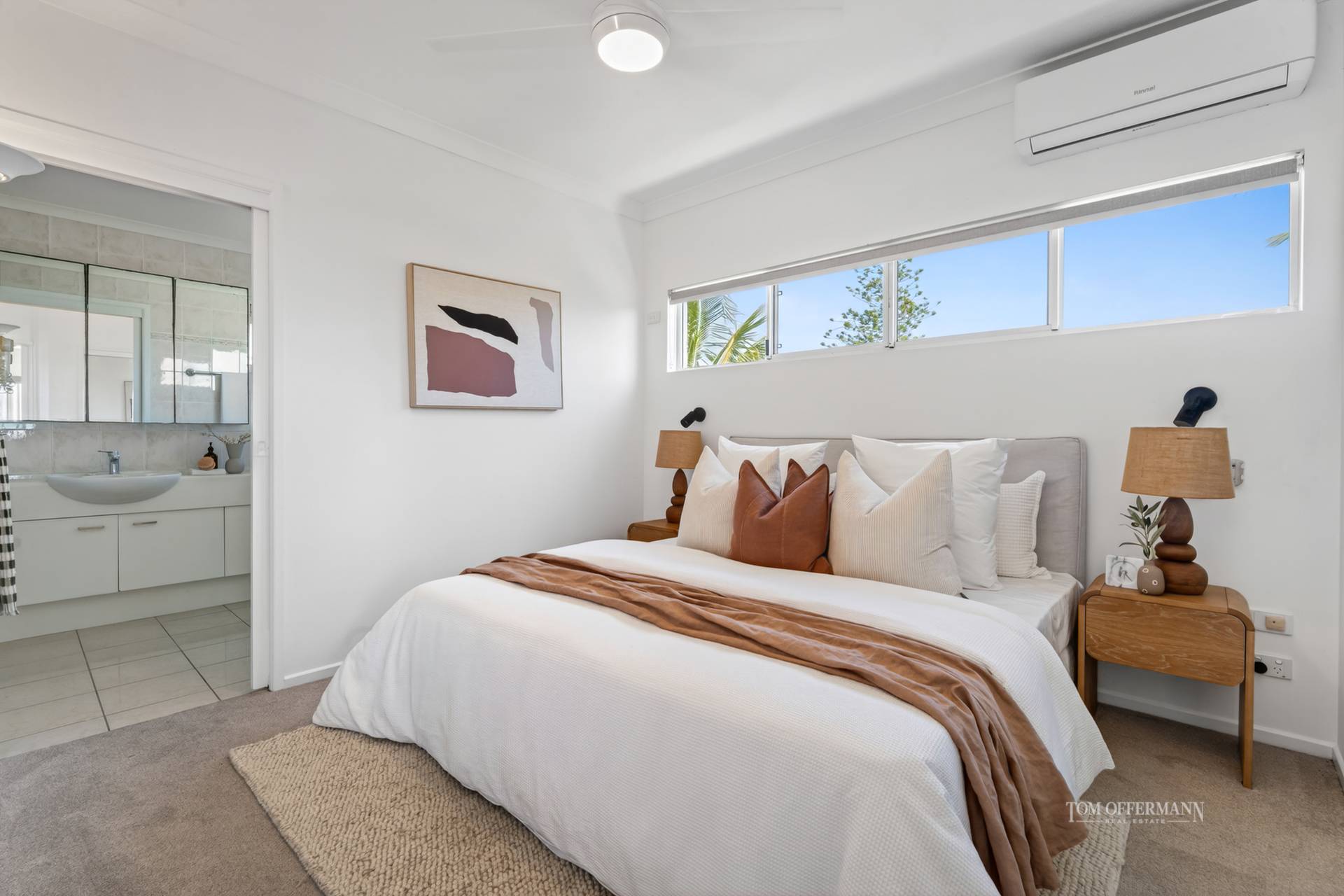 Existing features of note include two split system air-conditioners, ceiling fans, dual vanities in ensuite, floor to ceiling tiles in both bathrooms, full sized shower over bath in main bathroom, plush carpets in bedrooms, easy-care tiled flooring in expansive living/dining, and quality window furnishings.