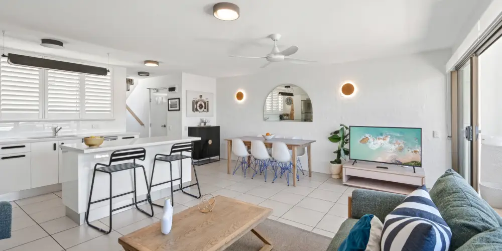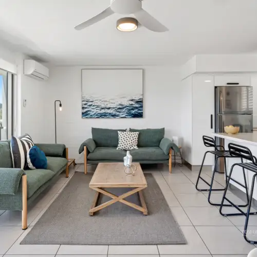 • About: air-conditioning, fans, security screens, hideaway laundry, full inventory included for continued holiday use