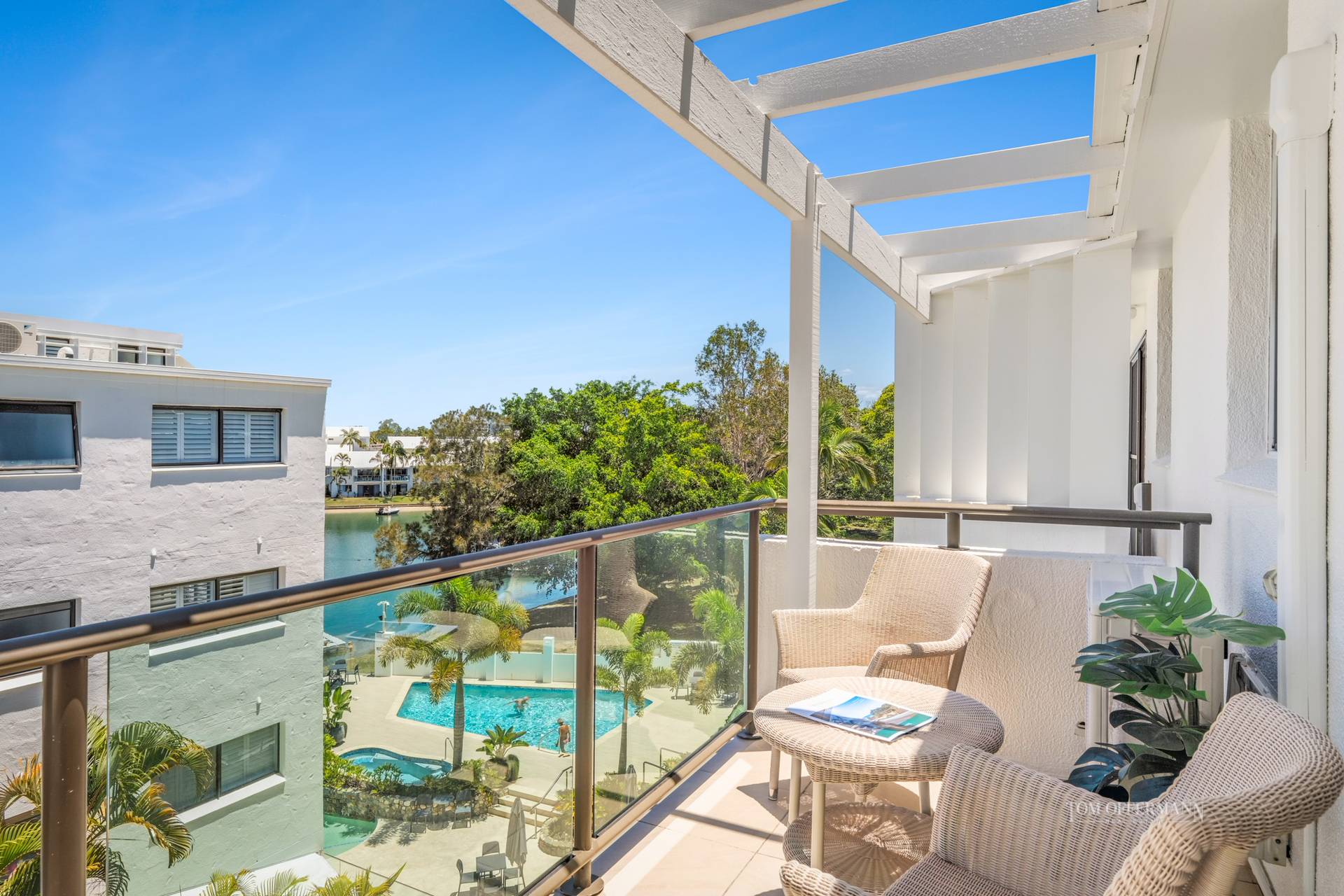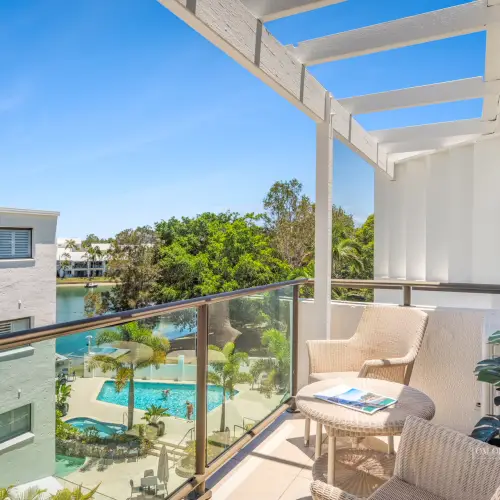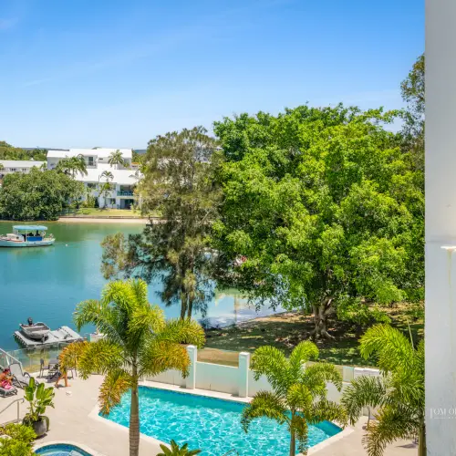 The complex features two stunning tropical edged pools, one for the kids, plus a spa, expansive sun terraces with multiple sun lounges, built in barbeque and accompanying lunching space plus a games area. Also, there's an on-site pontoon, neighbouring tennis court and fantastic access out to the river within the idyllic lagoon.