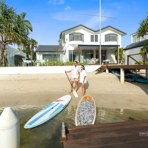 The magnetism of paradise on a sun-soaked 21m waterfrontage in a cul de sac, a white-sand tidal beach, extended jetty, boat shed, and a NE aspect with broad views of the turquoise waterways, is undeniable.