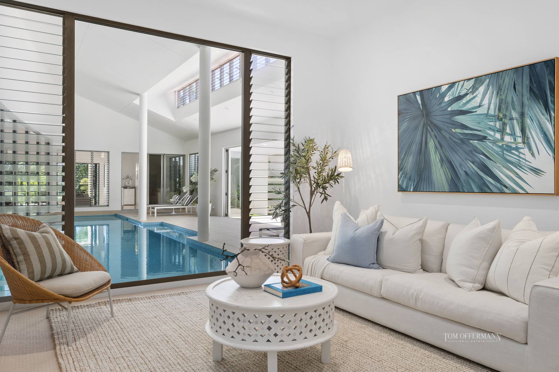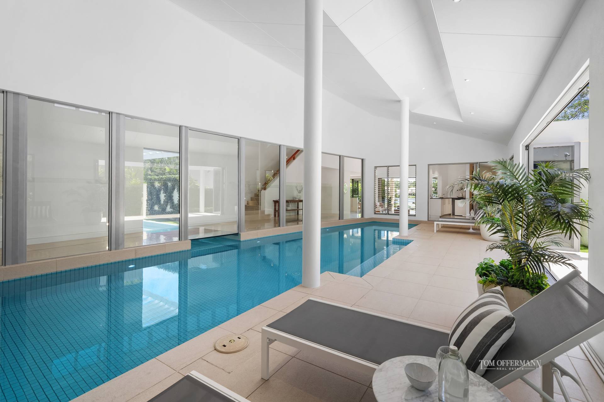 "The luminous, light-filled residence really tugs at the heart strings with sophistication, clever design individuality, such wellness and fitness capability given the 24/7 year-round benefits of the pool pavilion," comments Tom Offermann Real Estate marketing agent Jill Goode. Adding "and let's not forget the indoor-outdoor close connection to the private golf course frontage, lake and fairway.