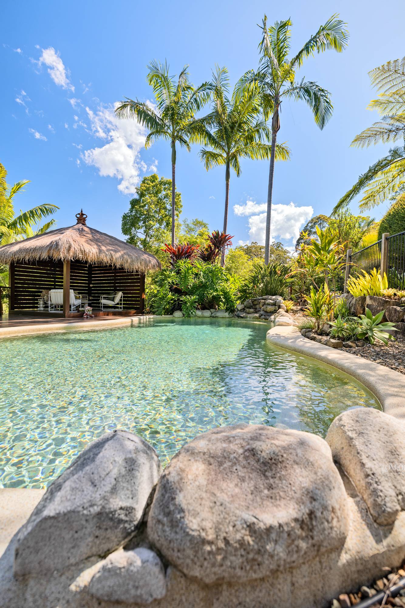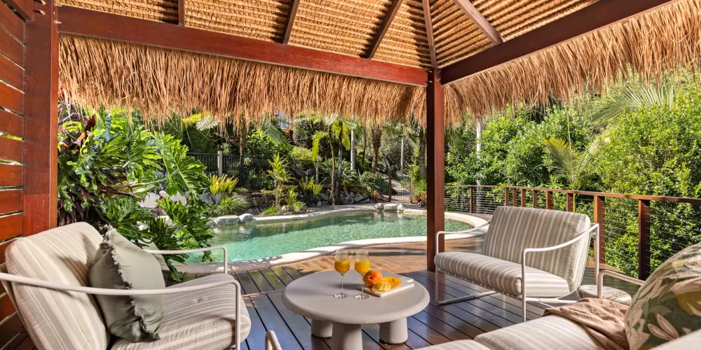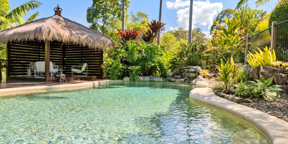 The piece-de-resistance among the suite of impressive features is the stunning heated lagoon-style pool with merbau timber decking and powered poolside Bali Hut with ambient lighting. Framed by the lushest of tropical vegetation you would be forgiven for thinking you have been transported to far North Queensland to your own private haven. Pina colada anyone?