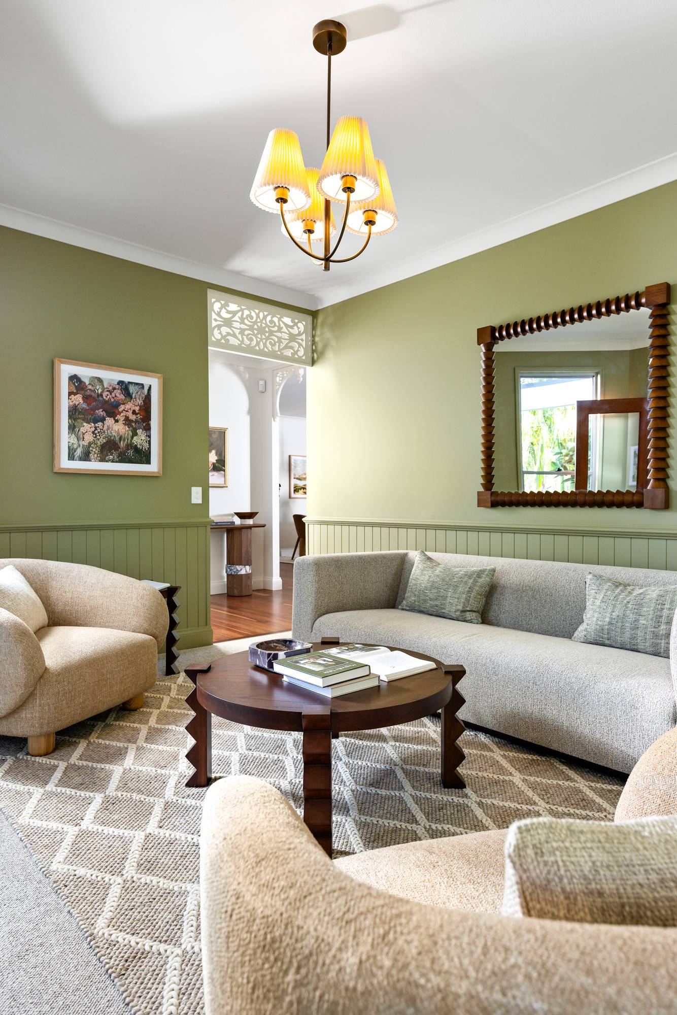 The floor plan facilitates good separation of living across essentially two wings with multiple casual, and formal living zones in between. The main bedroom is on the eastern side alongside an adjoining bedroom perfect for a nursery or office and has direct access to the cosy gazebo-shaped sunroom.
