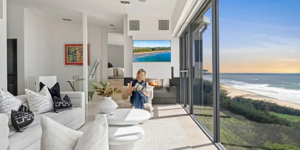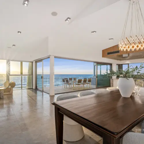 Step from one living space to another, then peel back the sliders to the cossetted luminescent pool and sun terrace, and on the north-east side two merbau terraces seemingly extend to the sand.